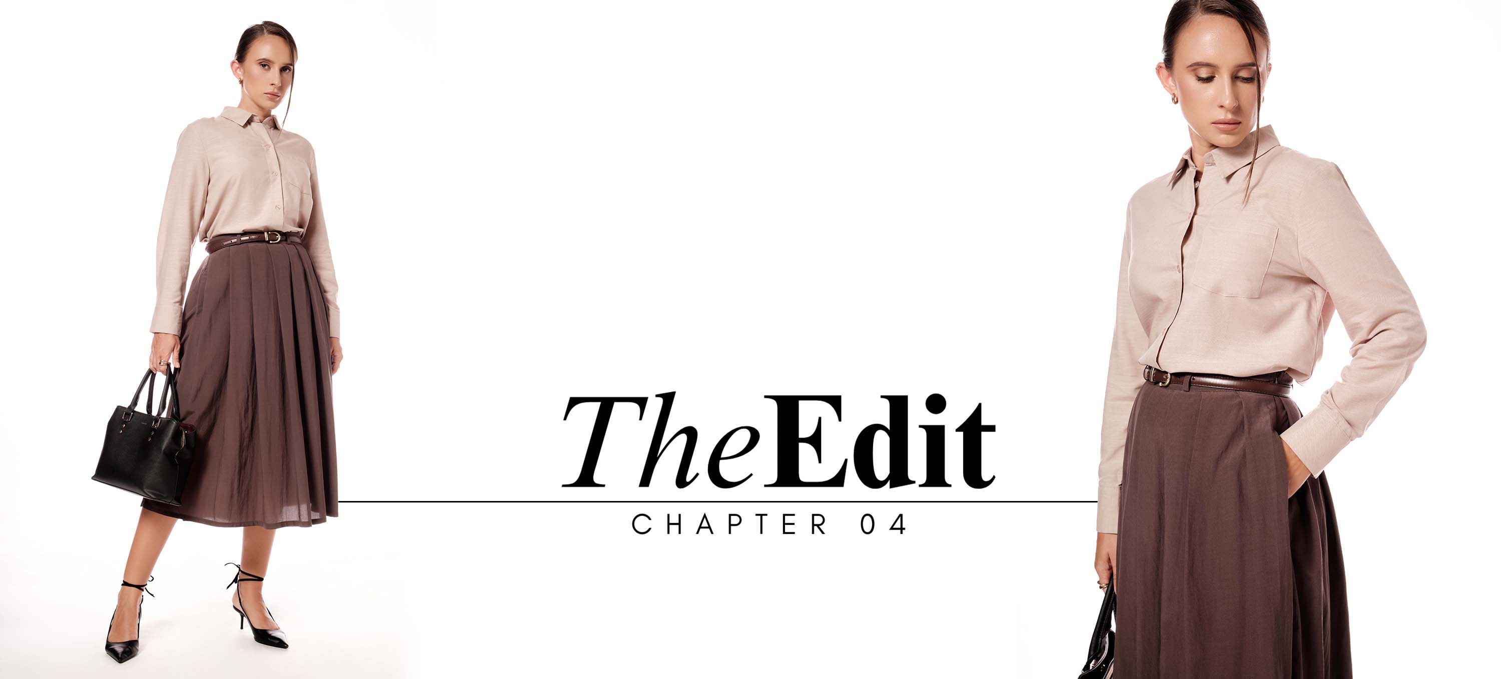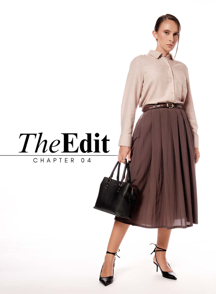 PLEATED PRINTED MIDI SKIRT - BROWN