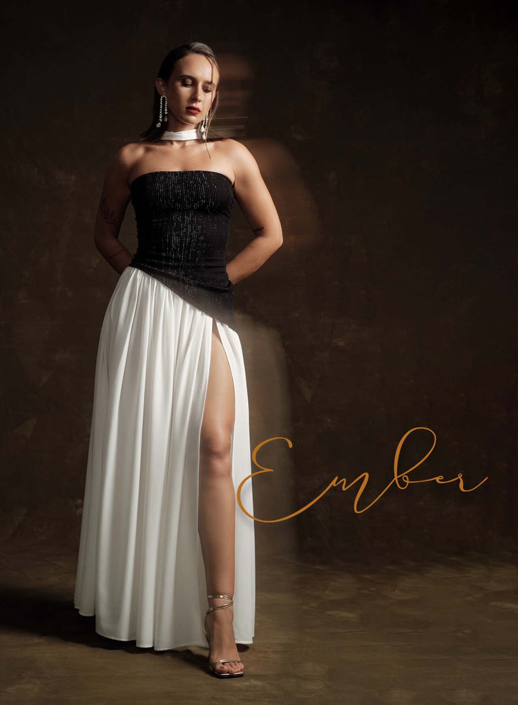 HIGH SLIT EXTENDED SHOULDER DRESS