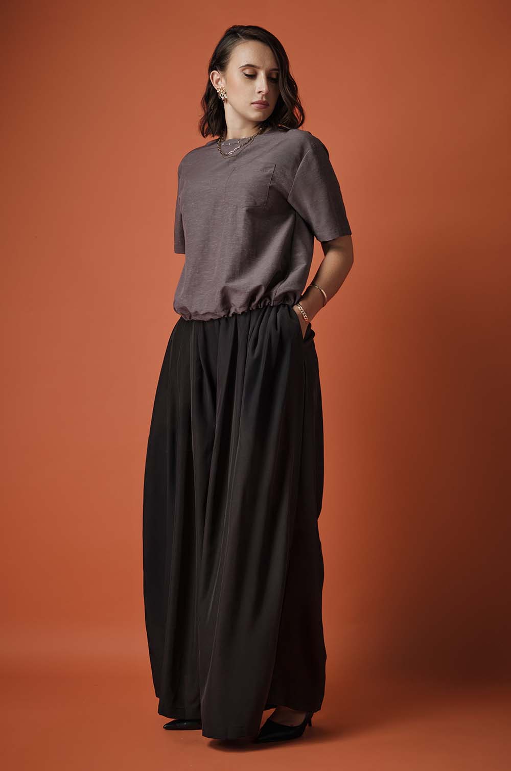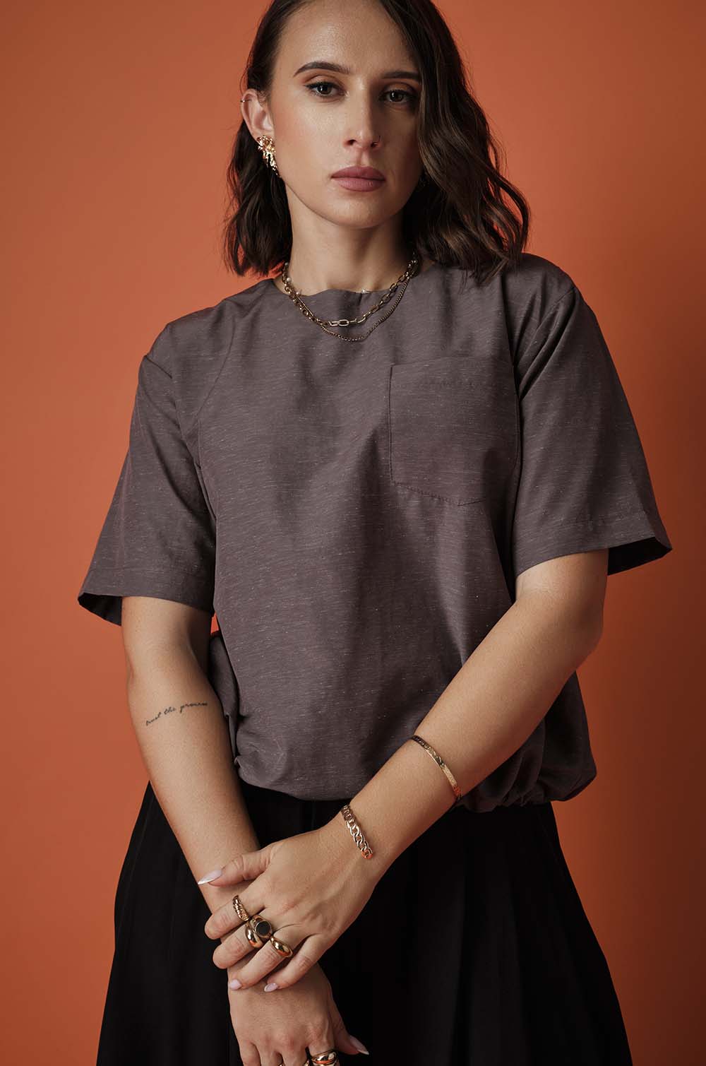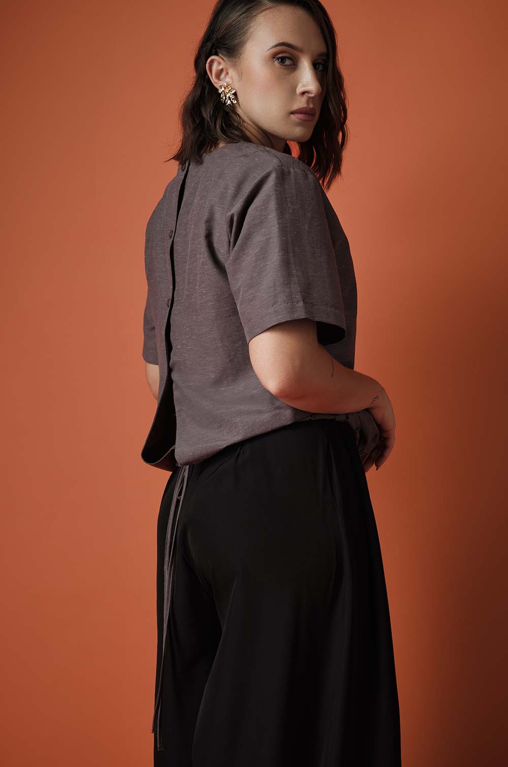 BACK BUTTONED TOP - BROWN