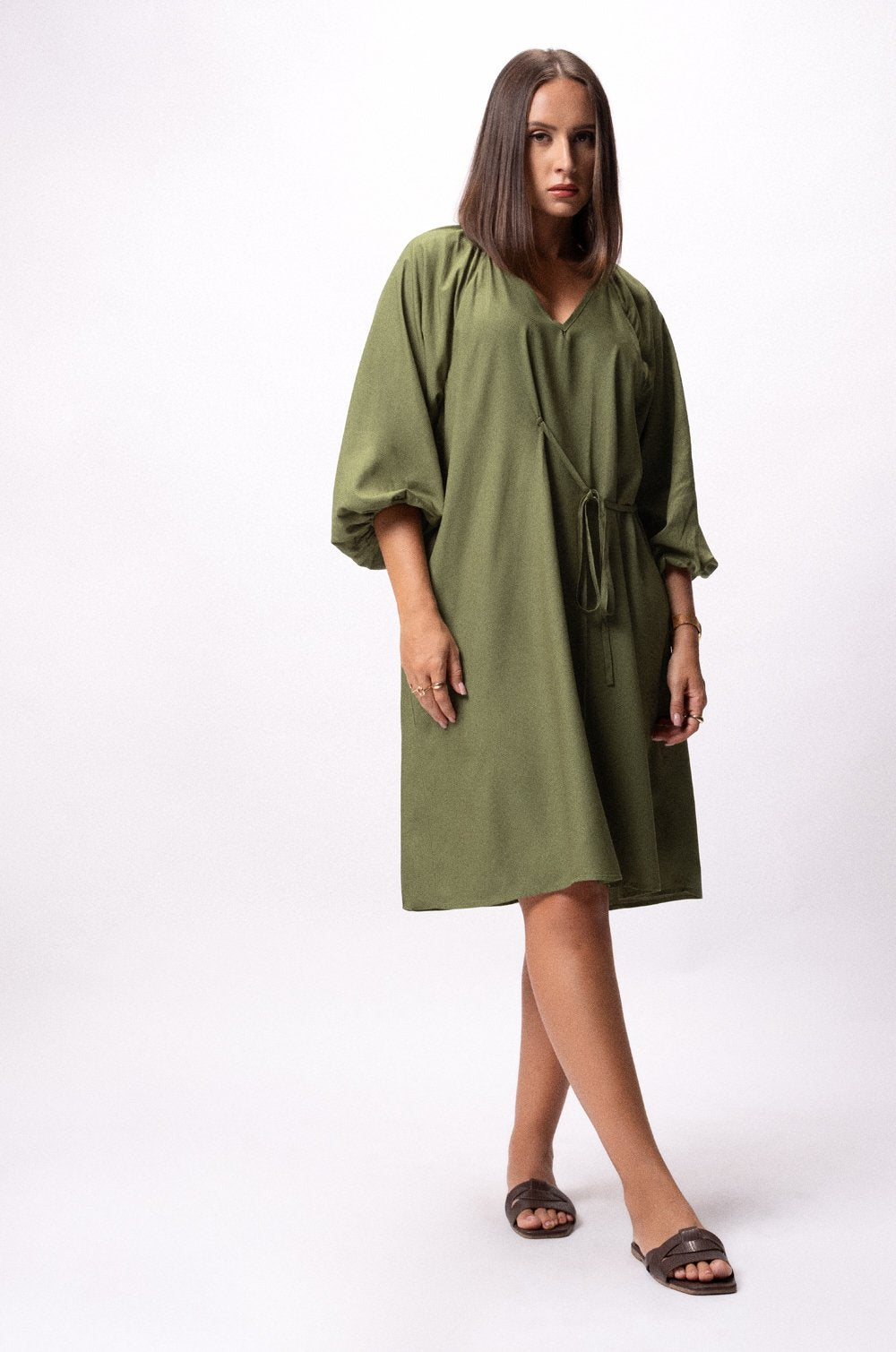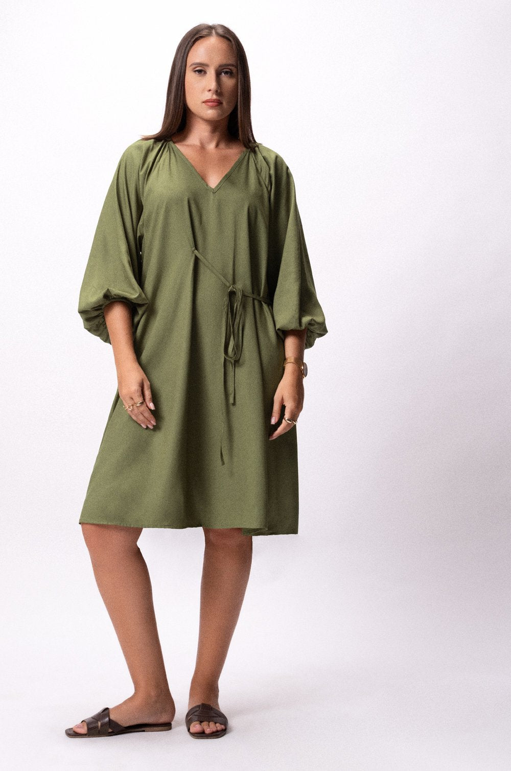 BALLOON SLEEVE SHIFT DRESS - GREEN