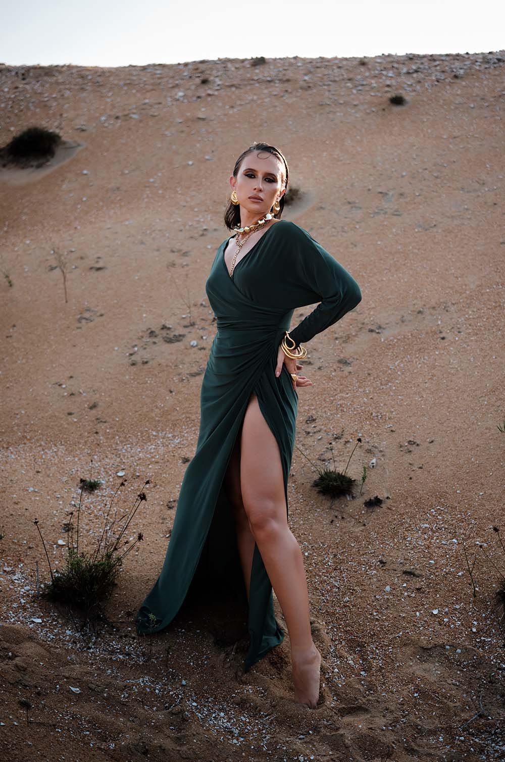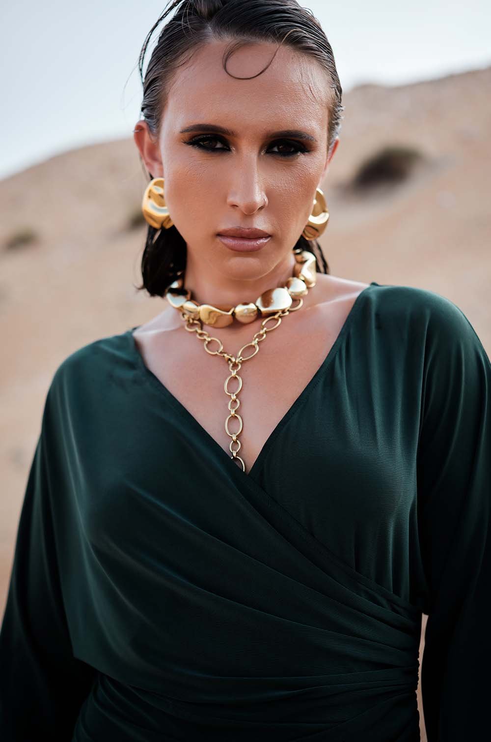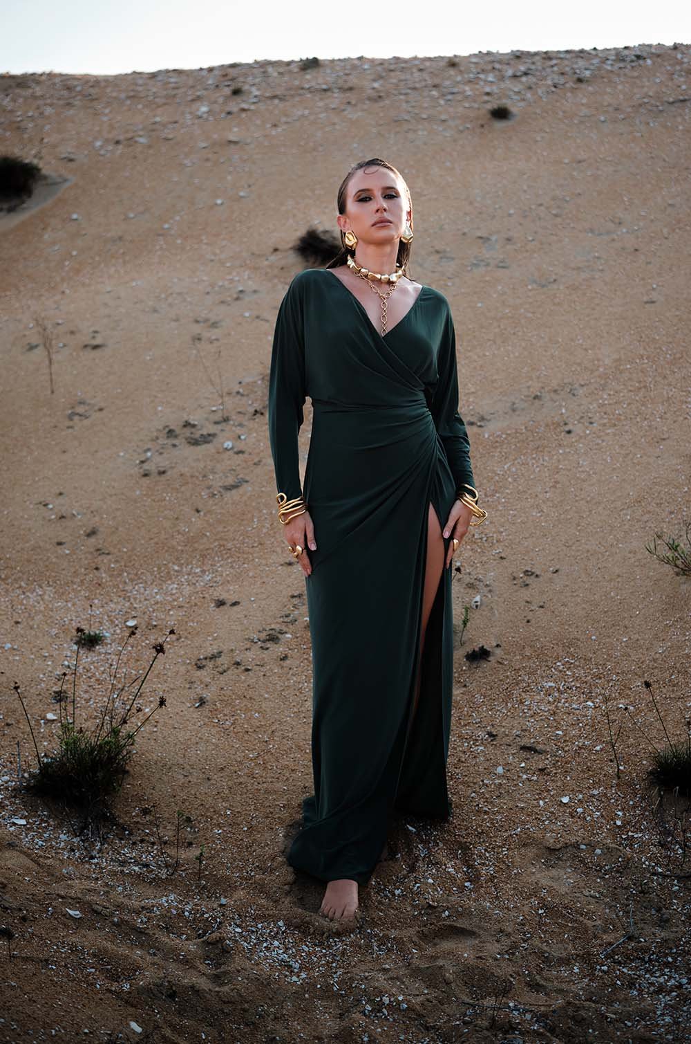 BAT WING SLEEVE MAXI DRESS - GREEN