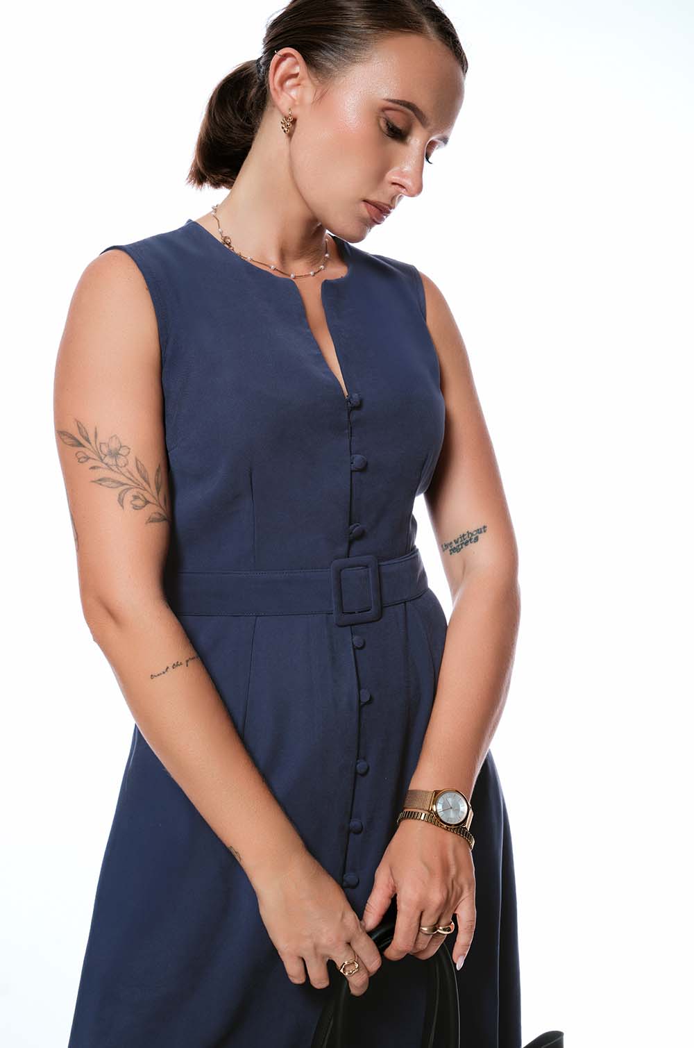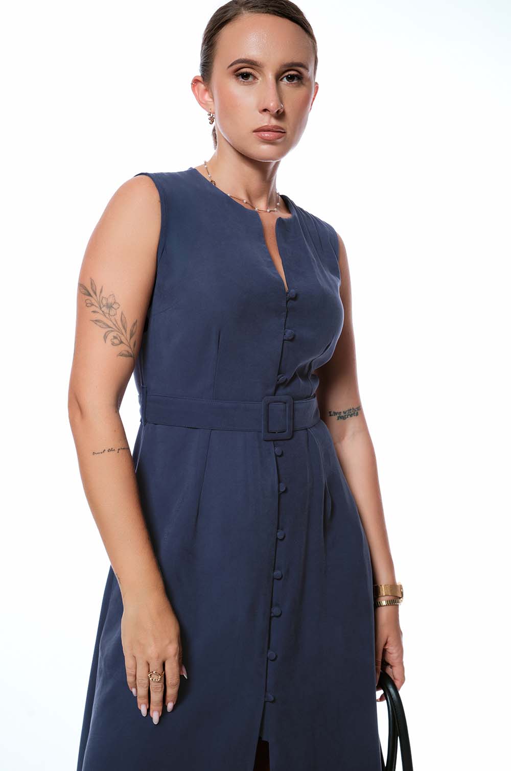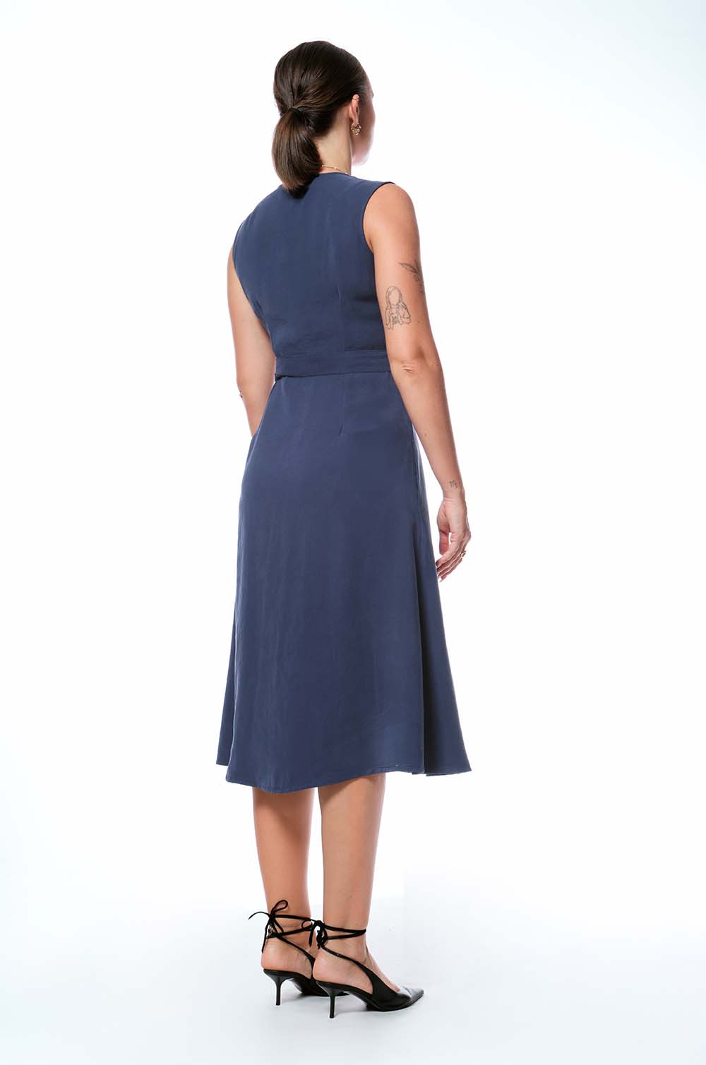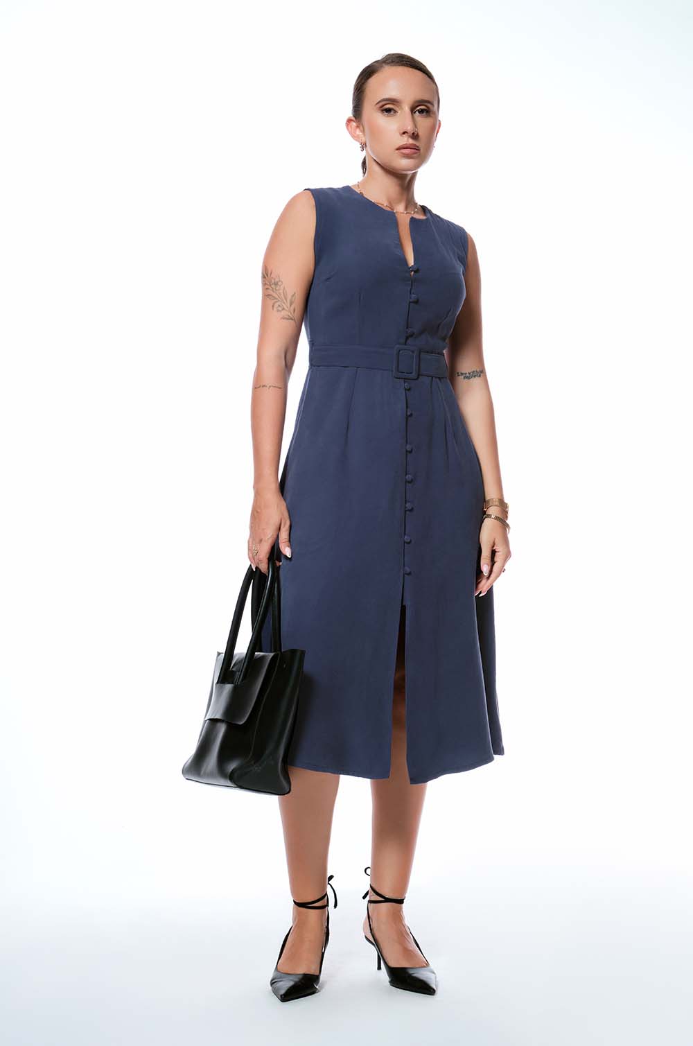 BUTTONED MIDI DRESS - BLUE