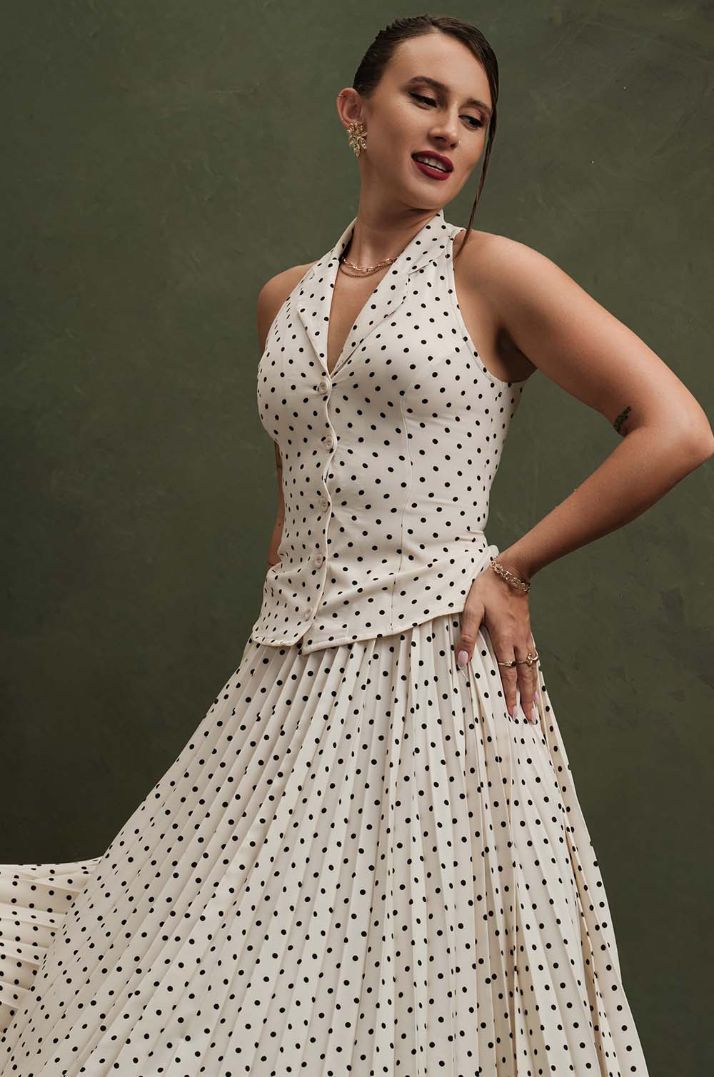 CINCHED WAIST SLEEVELESS TOP - BEIGE