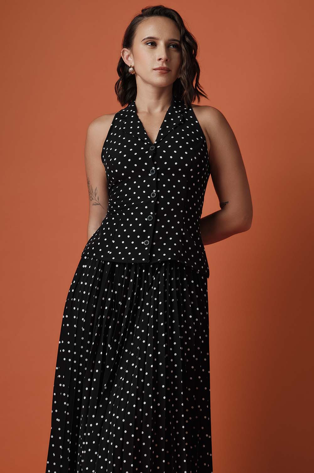 CINCHED WAIST SLEEVELESS TOP - BLACK