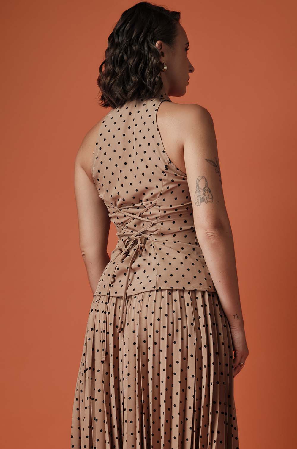 CINCHED WAIST SLEEVELESS TOP - BROWN