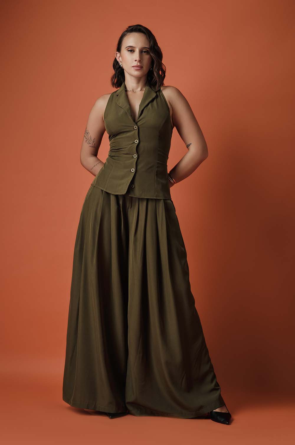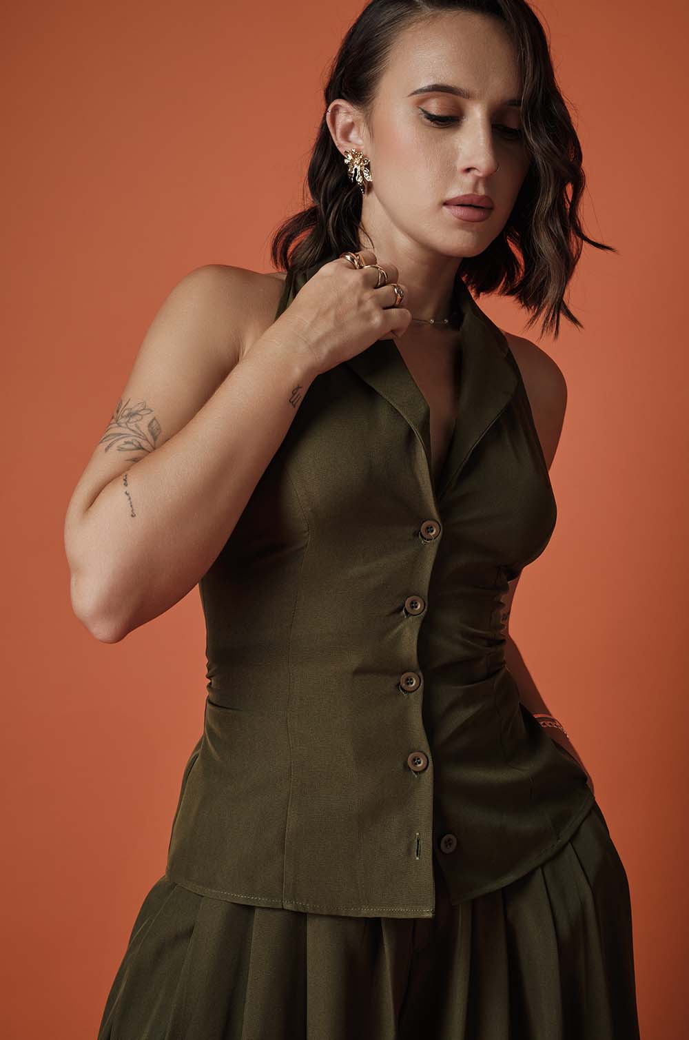 CINCHED WAIST SLEEVELESS TOP - SOLID OILVE