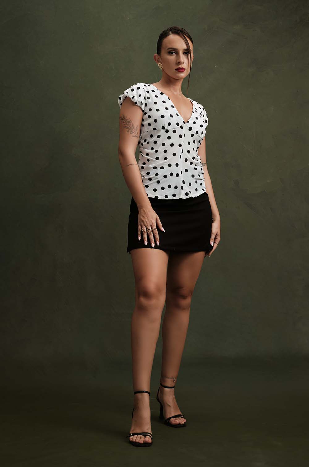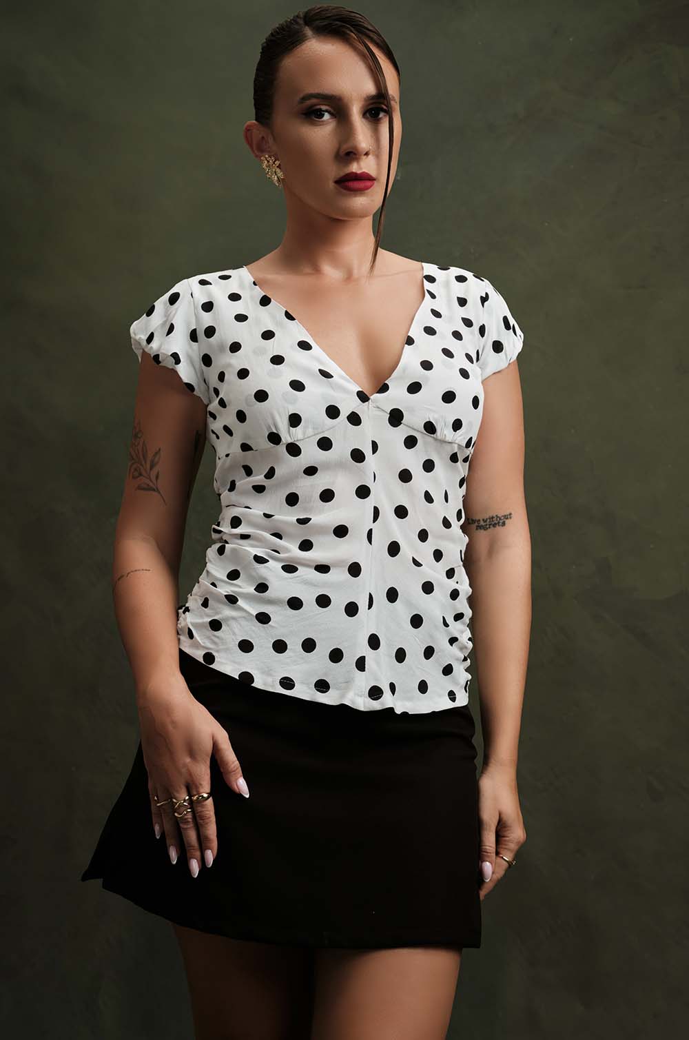 PUFF SLEEVE PLUNGE NECK TOP - WHITE