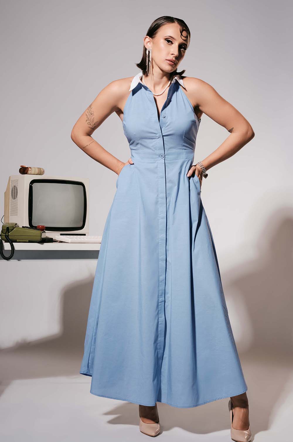 Contrast Collar Maxi Dress