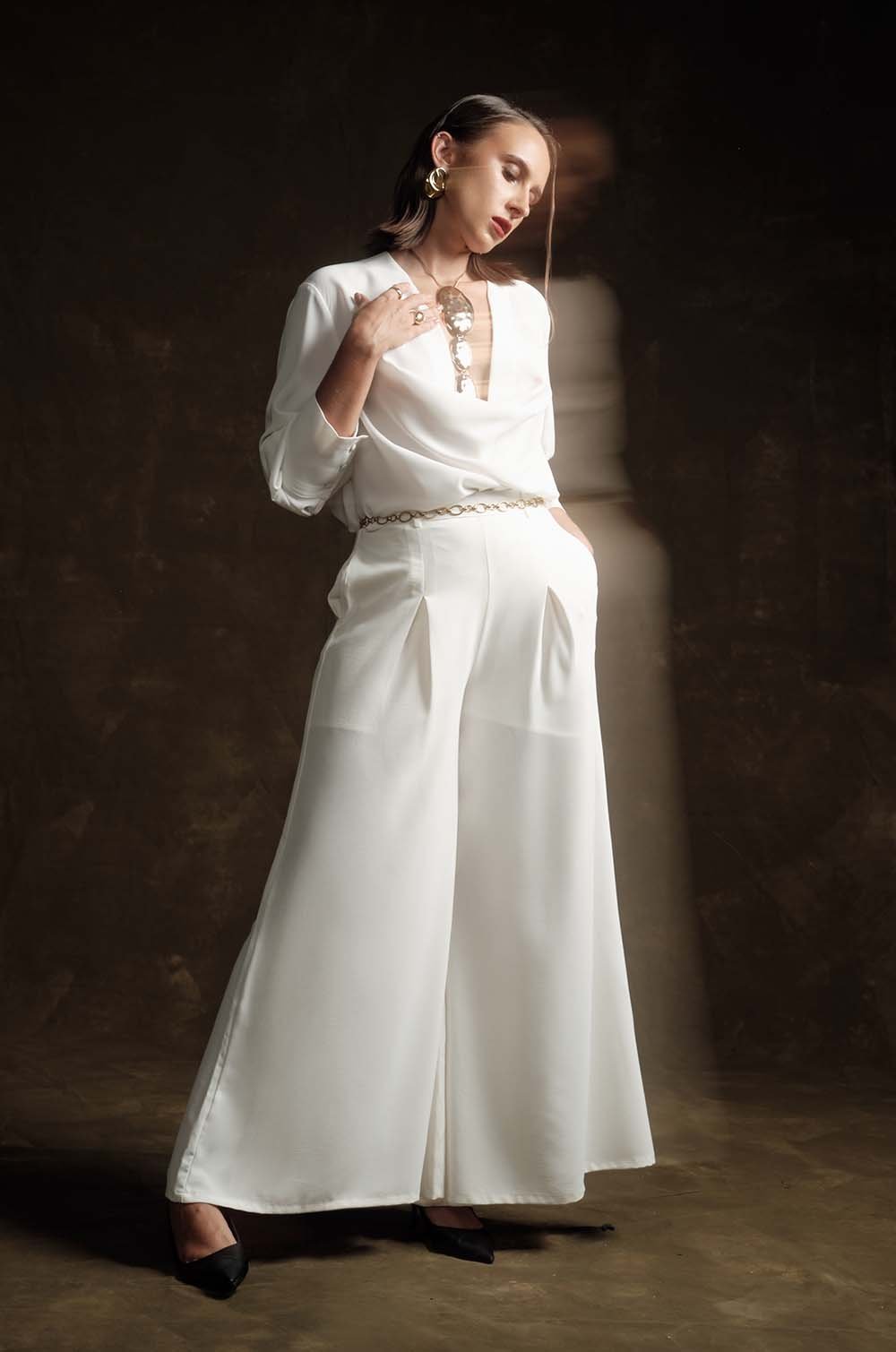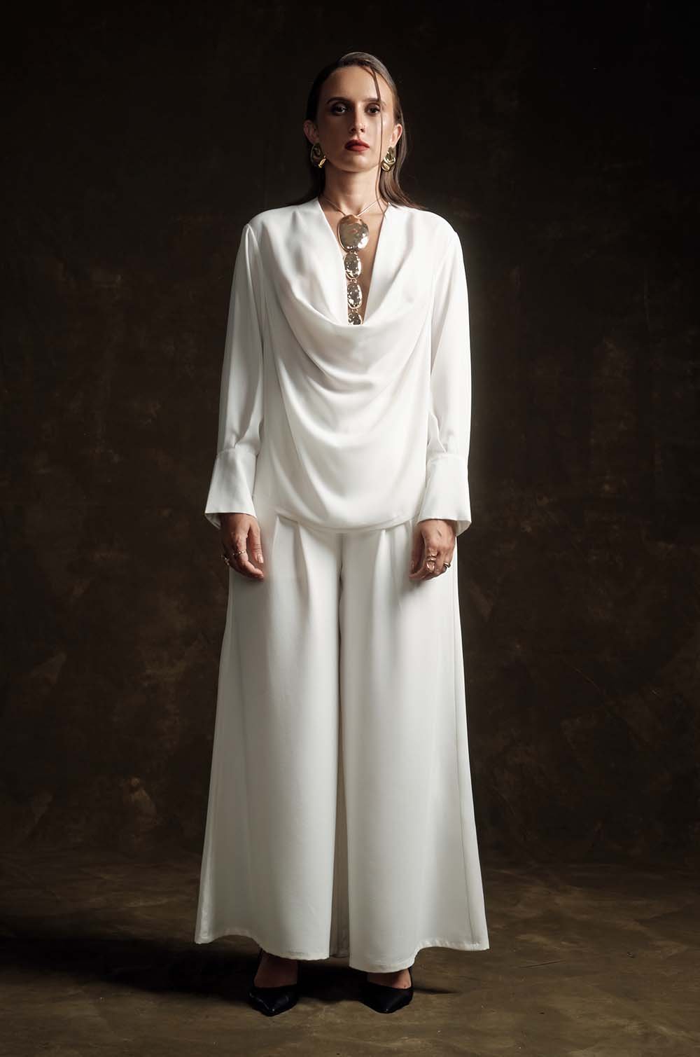 COWL NECK SHIRT - OFF WHITE