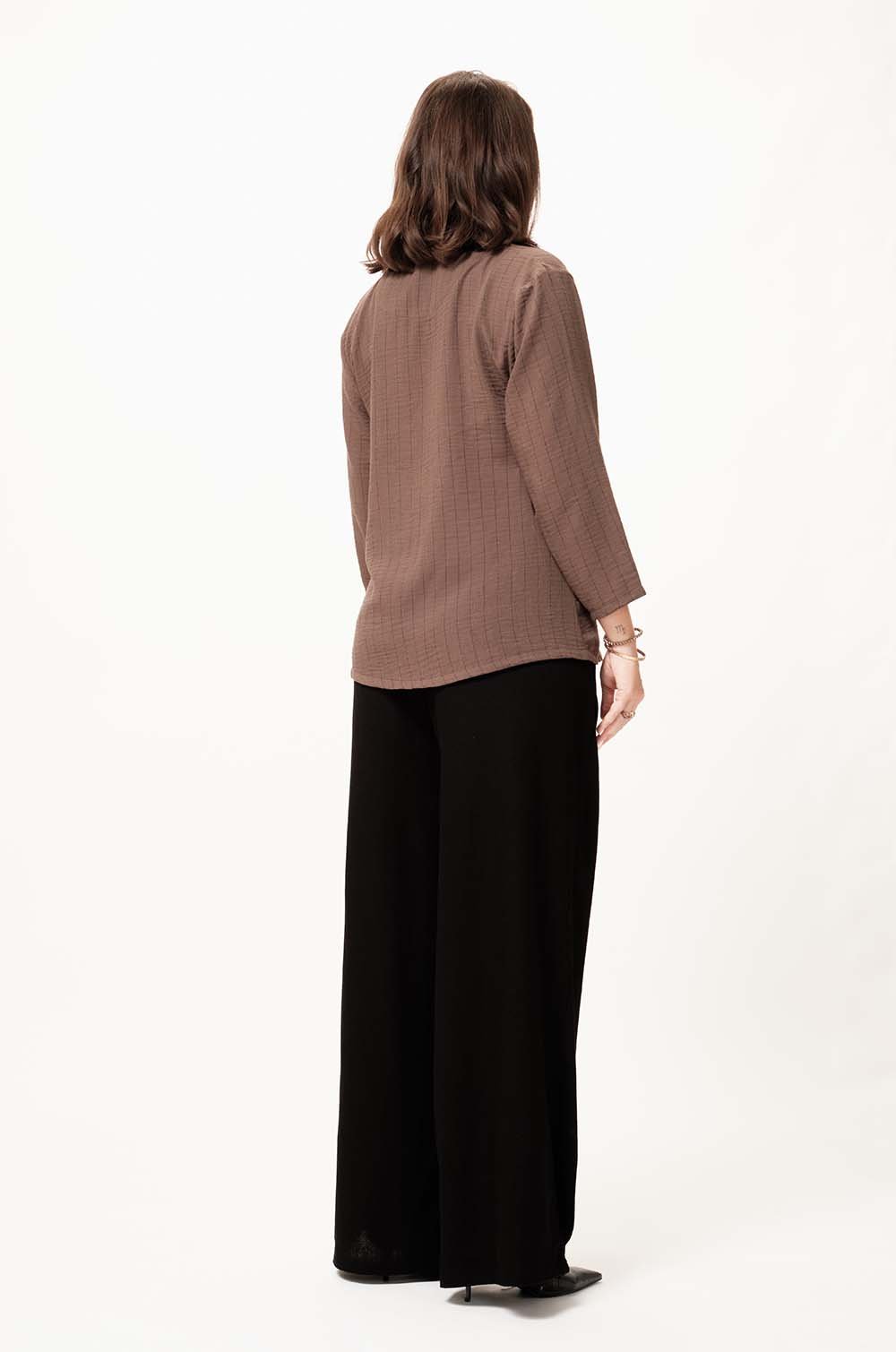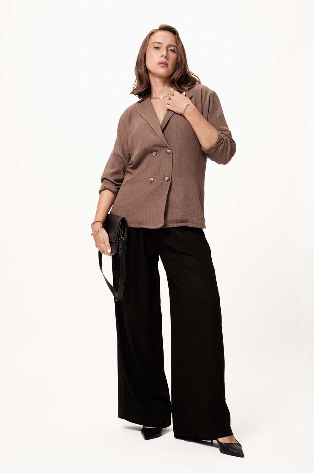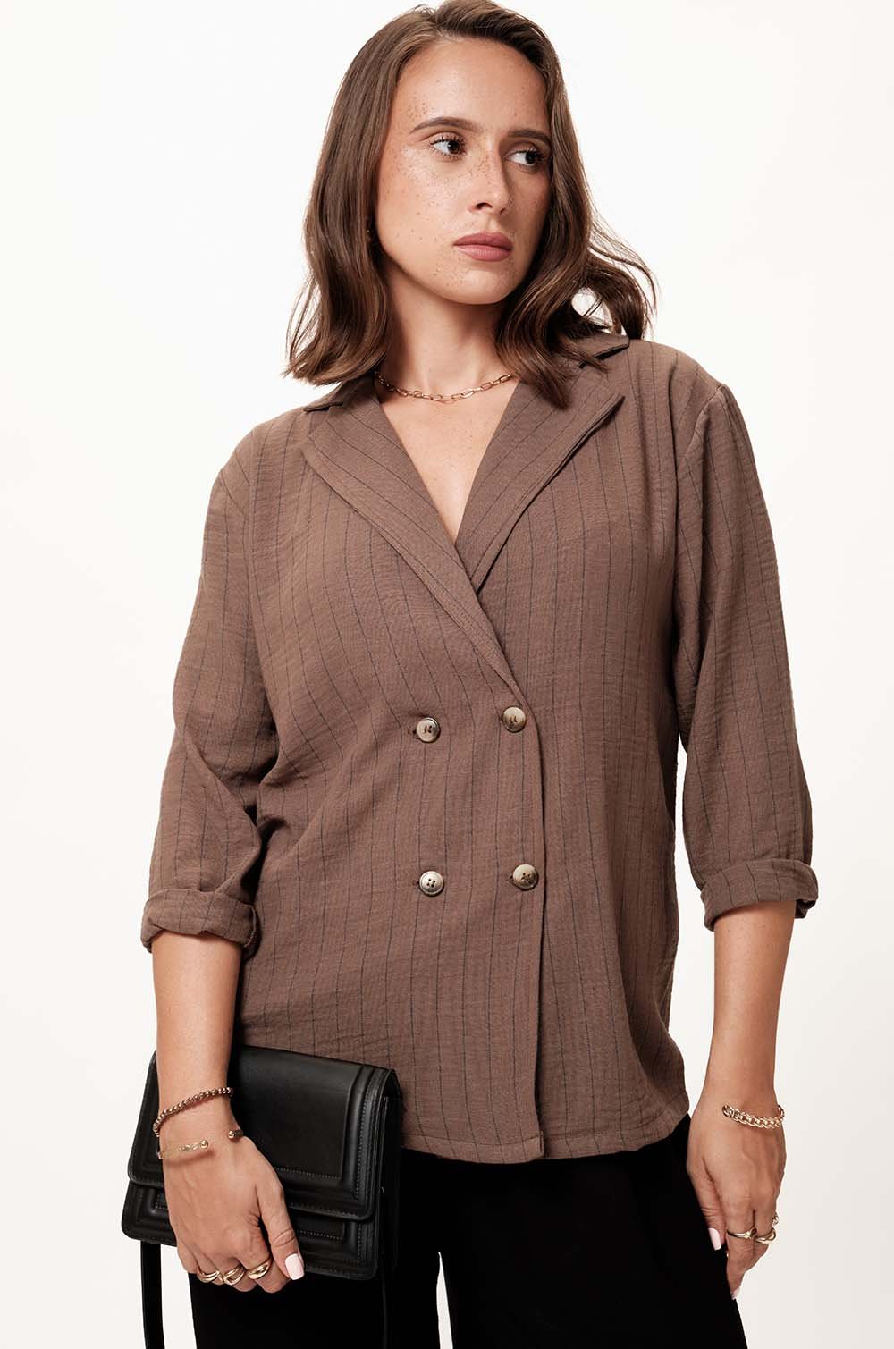 DOUBLE BRESTED BLAZER TOP - BROWN