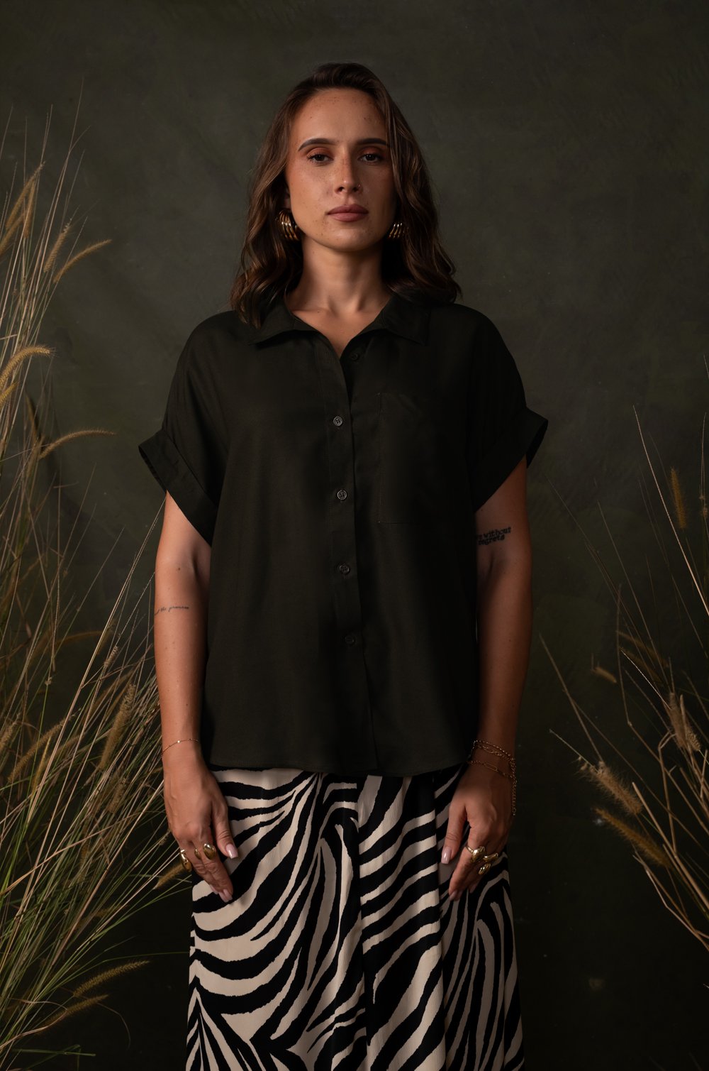 EXTENDED SHOULDER LOSEFIT TOP - BOTTLE GREEN