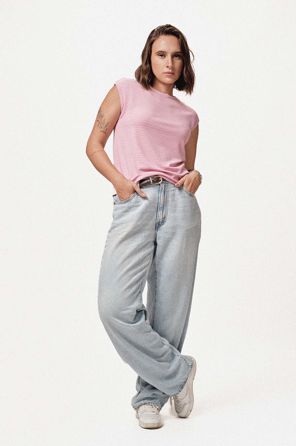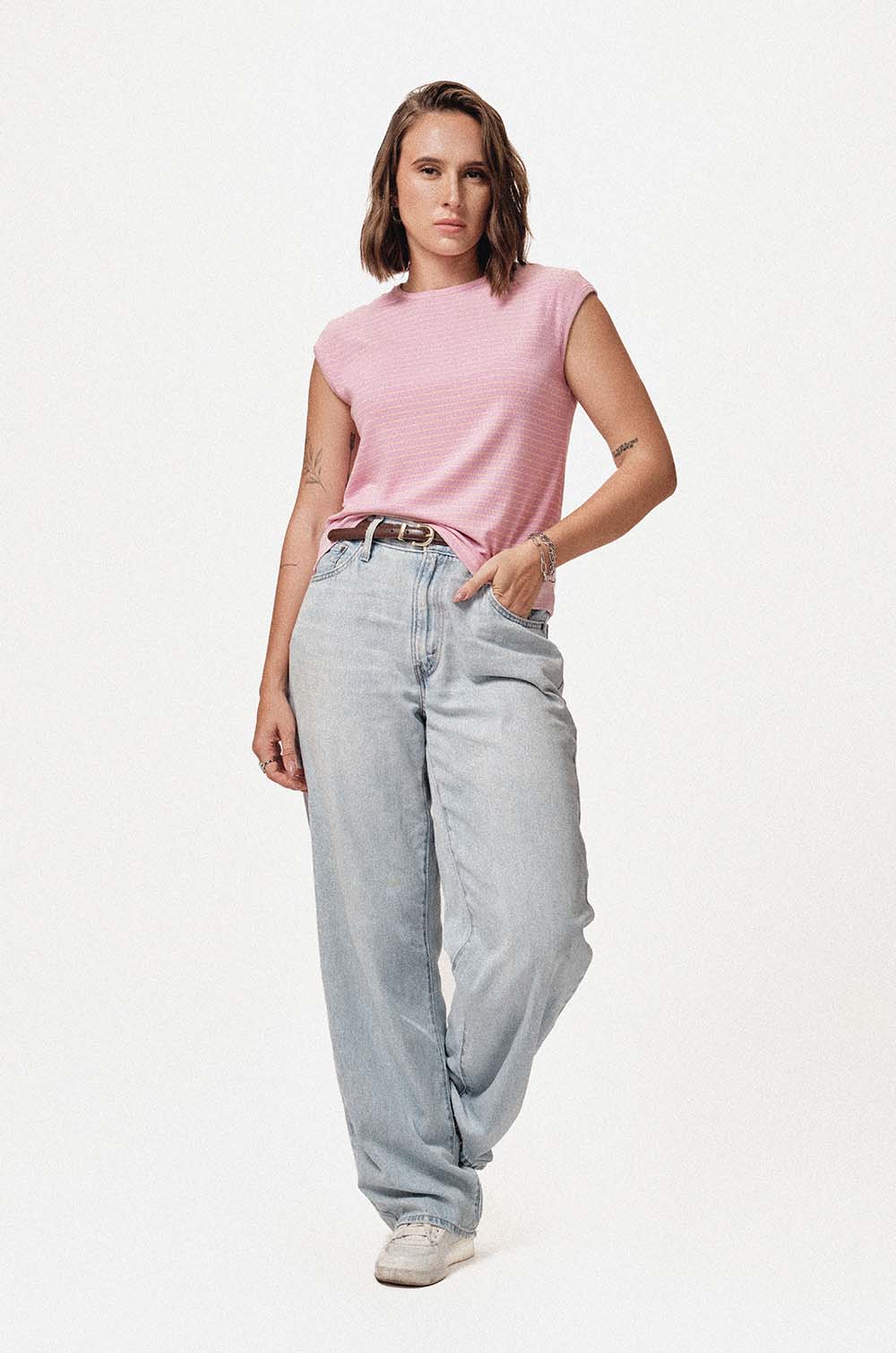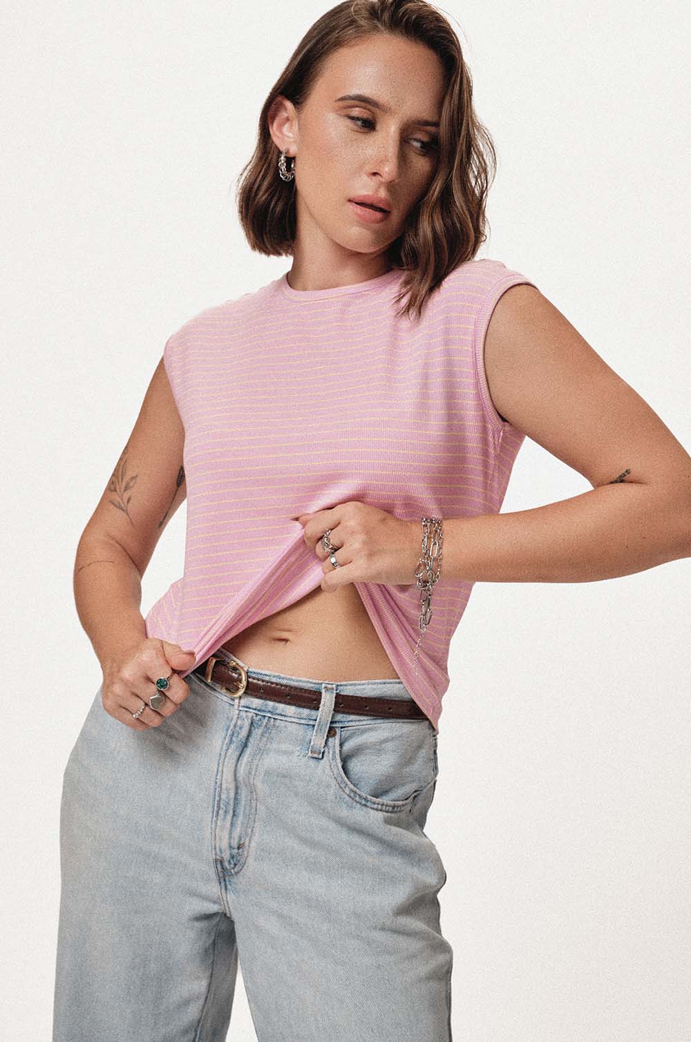 EXTENDED SLEEVE T-SHIRT - PINK STRIPE