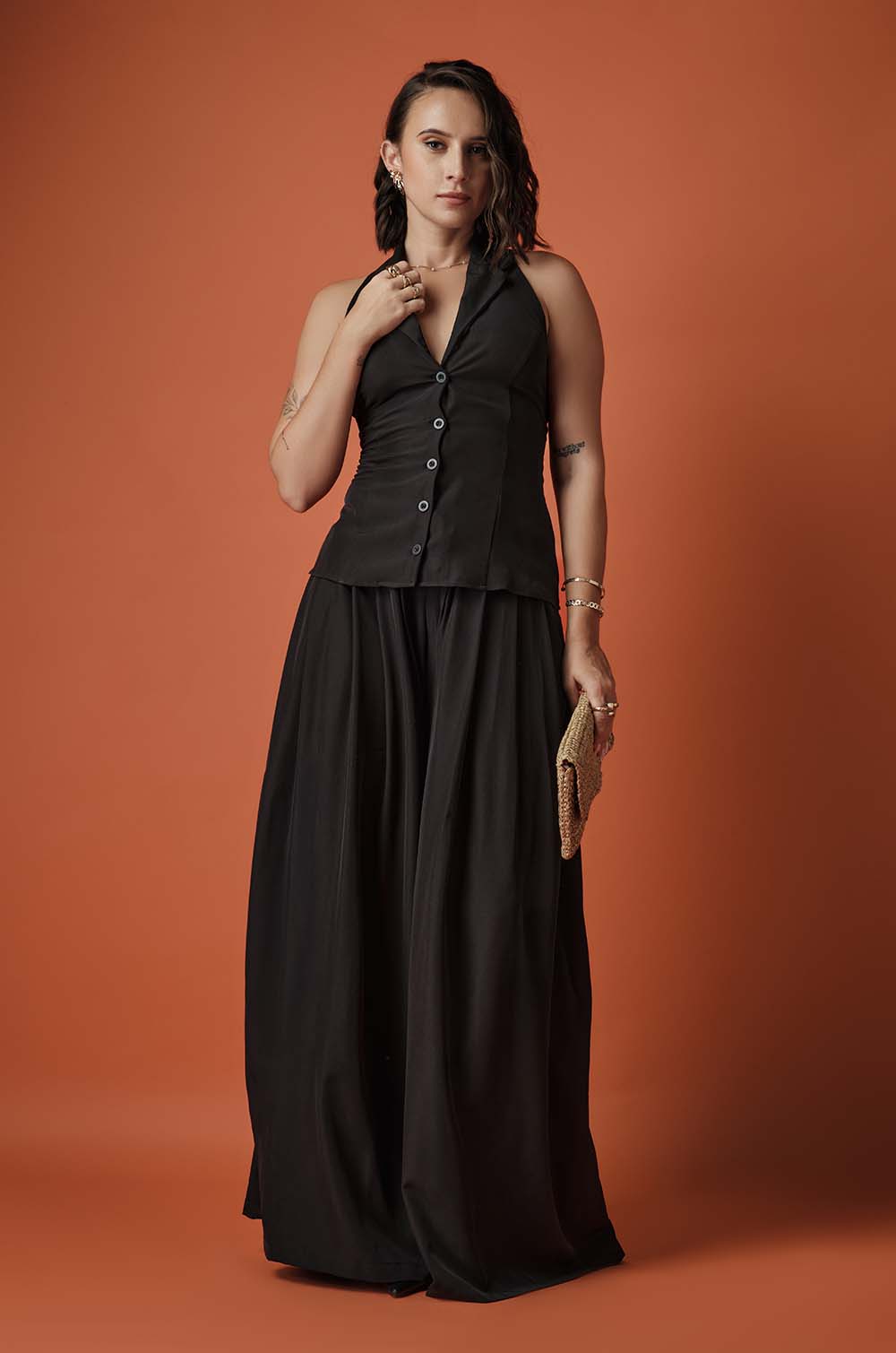 FLOWY PLEATED PANTS - BLACK