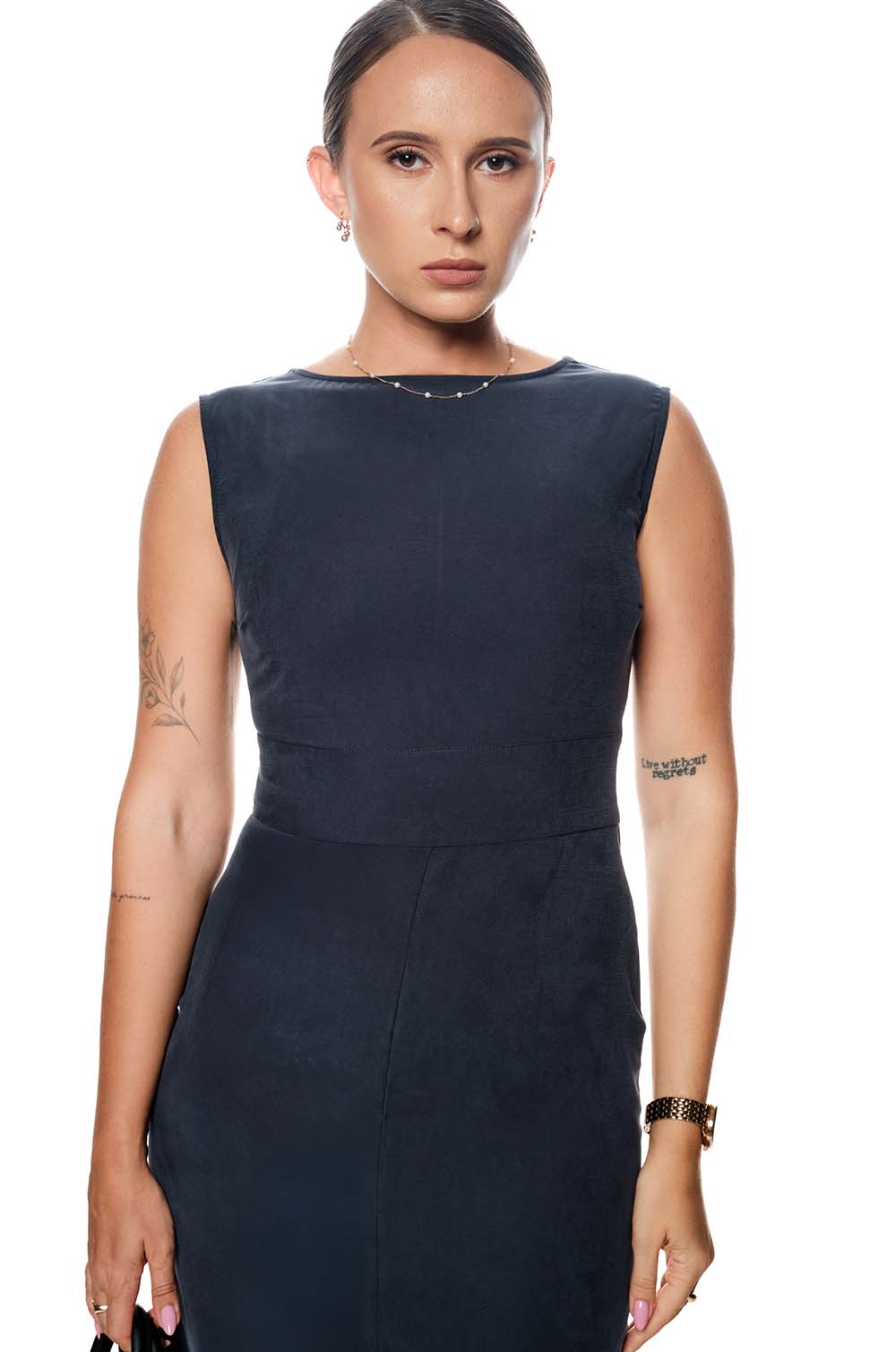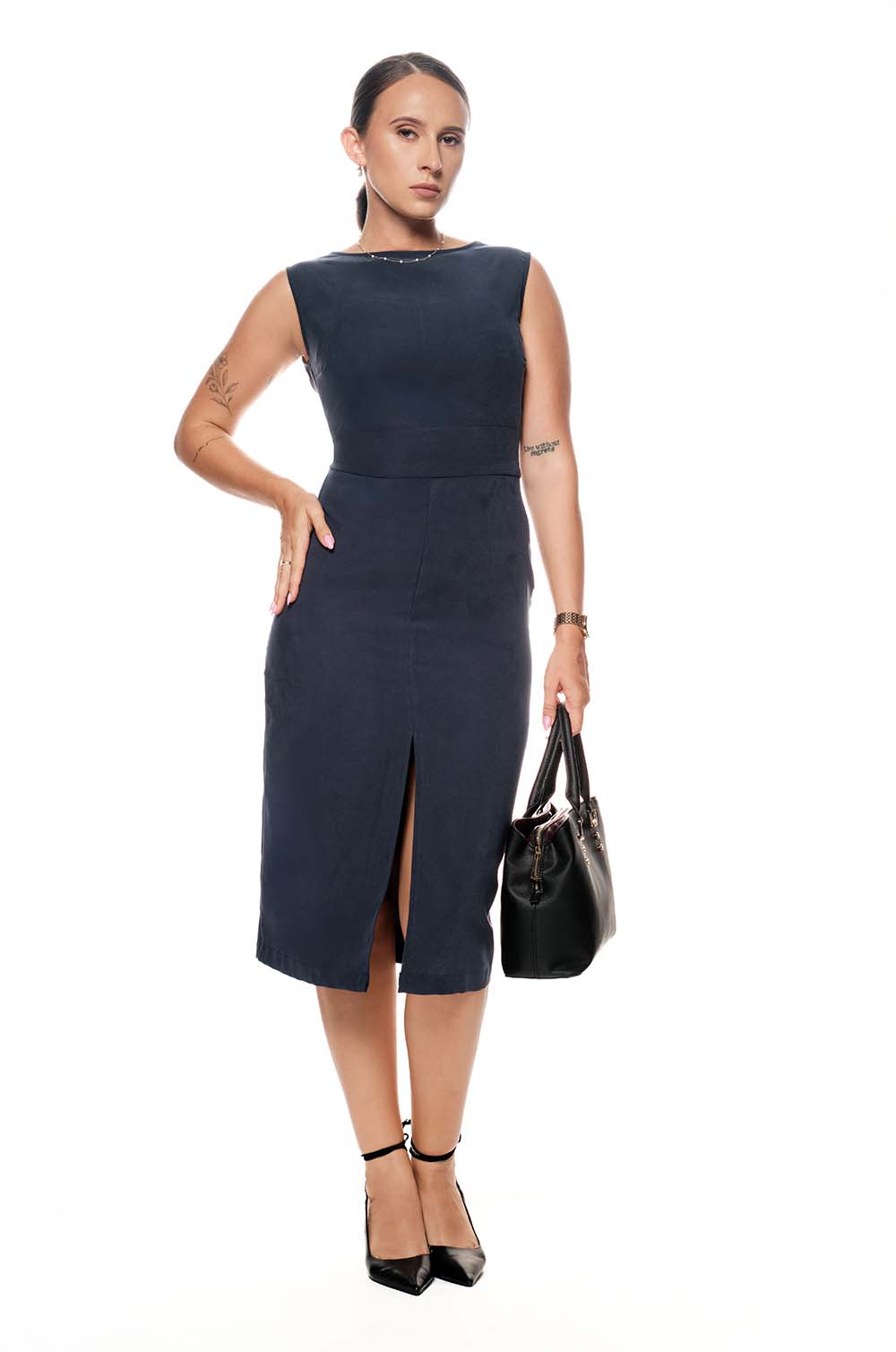 FRONT SLIT MIDI DRESS - NAVY BLUE