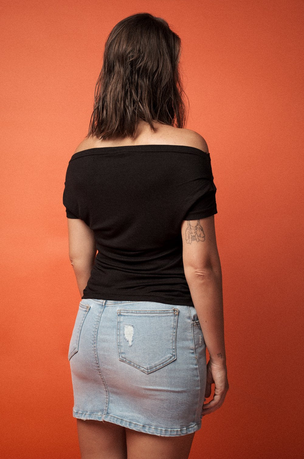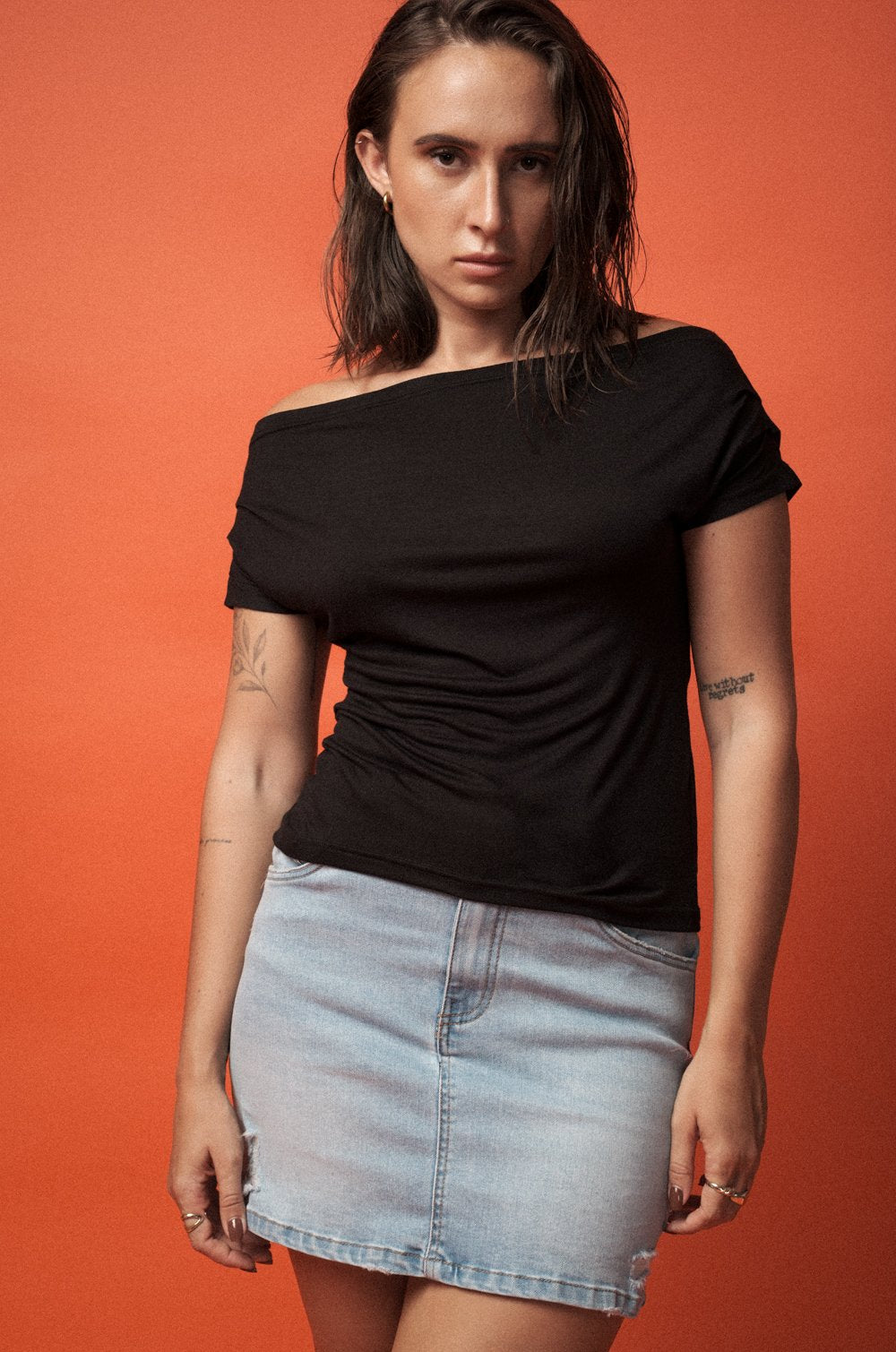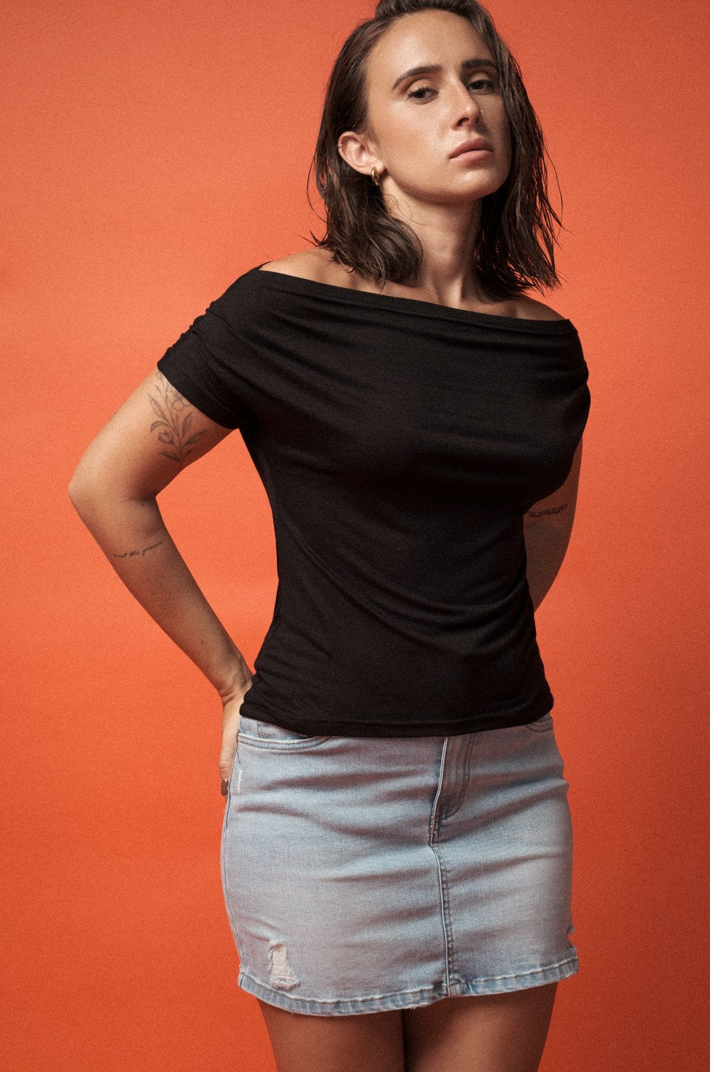 GATHERED OFF-SHOULDER TOP - BLACK