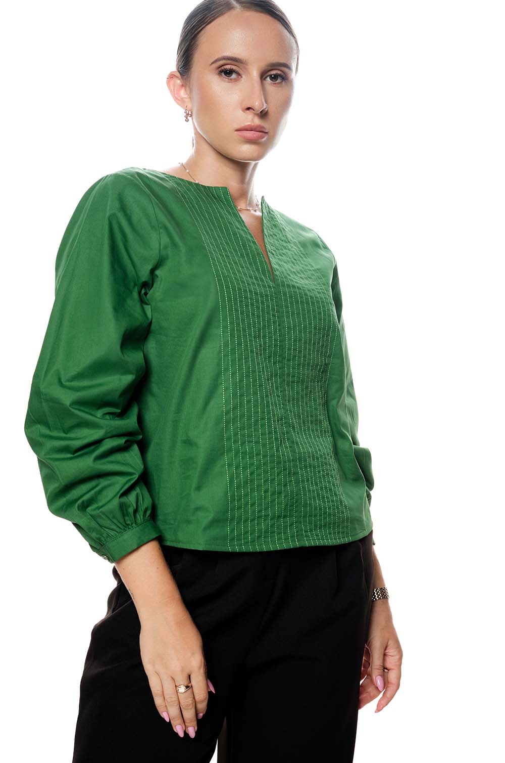 LINE EMBROIDED TOP - GREEN