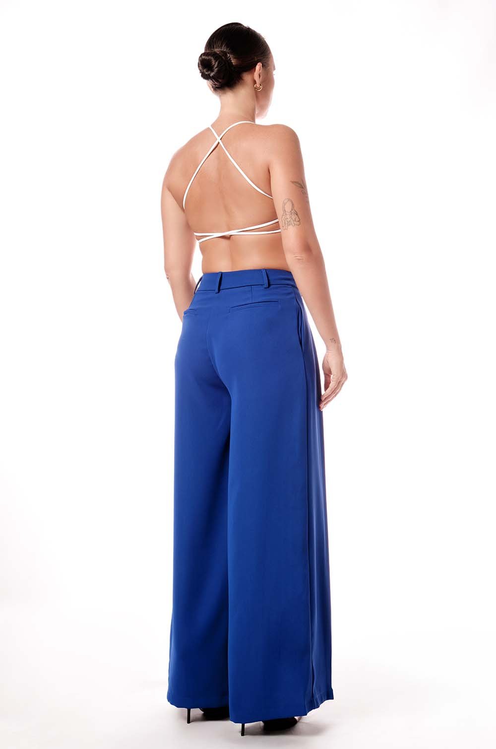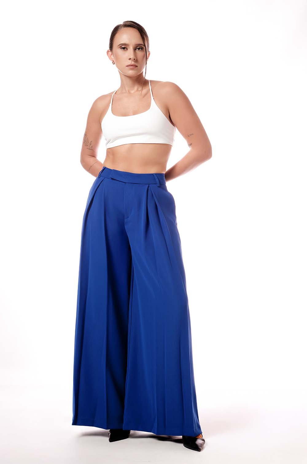 PLEATED FLARED PANTS - BLUE