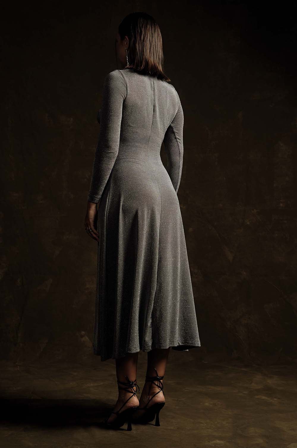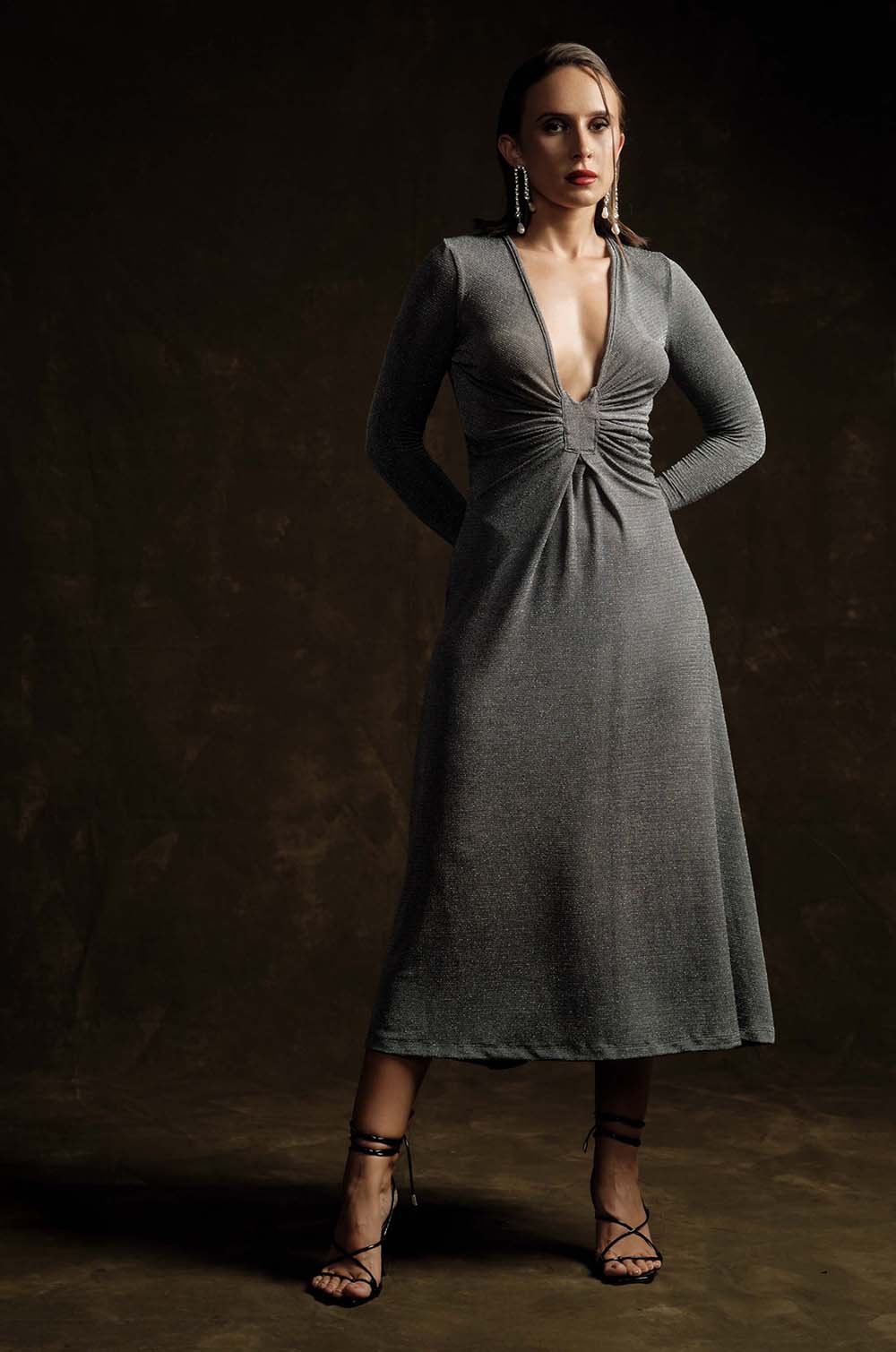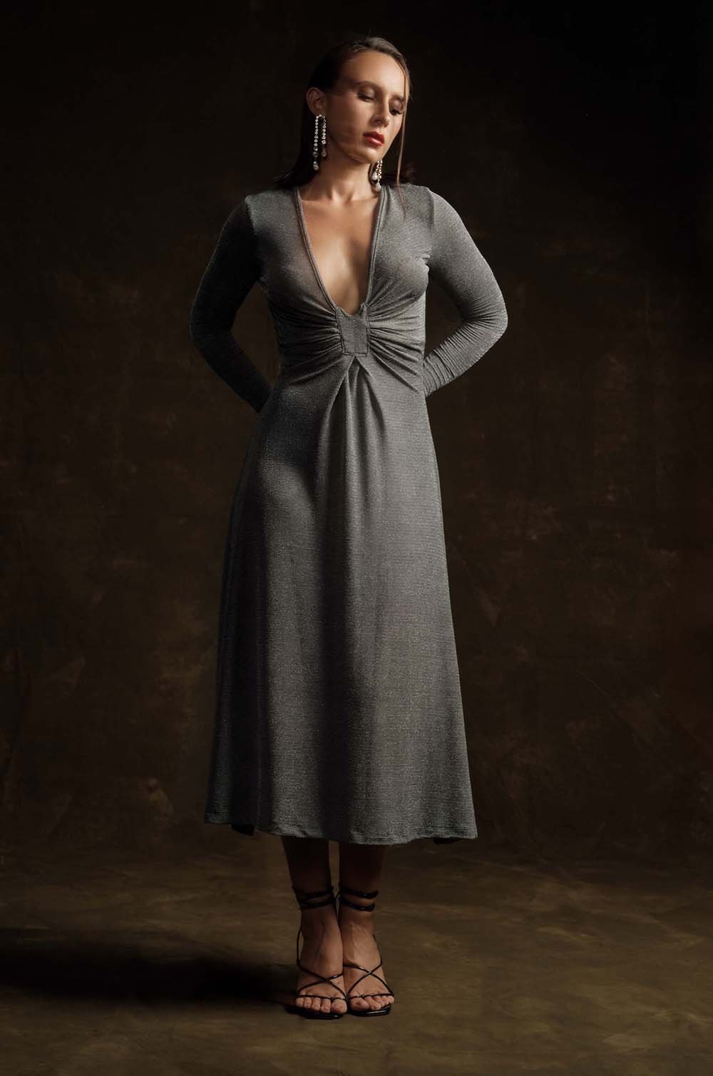 PLUNGE NECKLINE MIDI DRESS