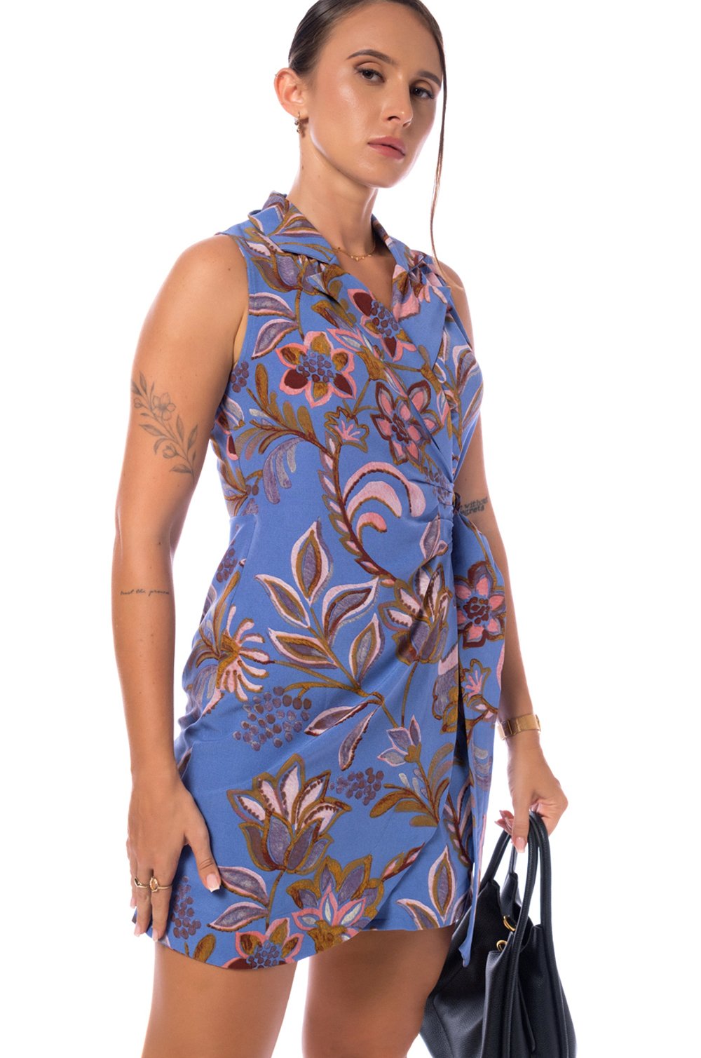 PRINTED BUCKLED DRESS - BLUE PRINTED