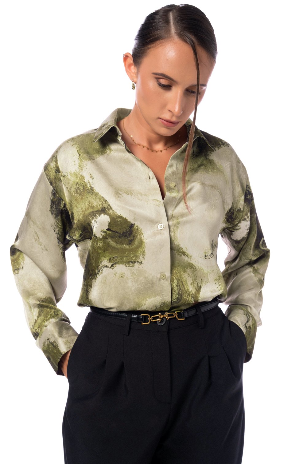 PRINTED OVERSIZED SHIRT - GREEN PRINTED