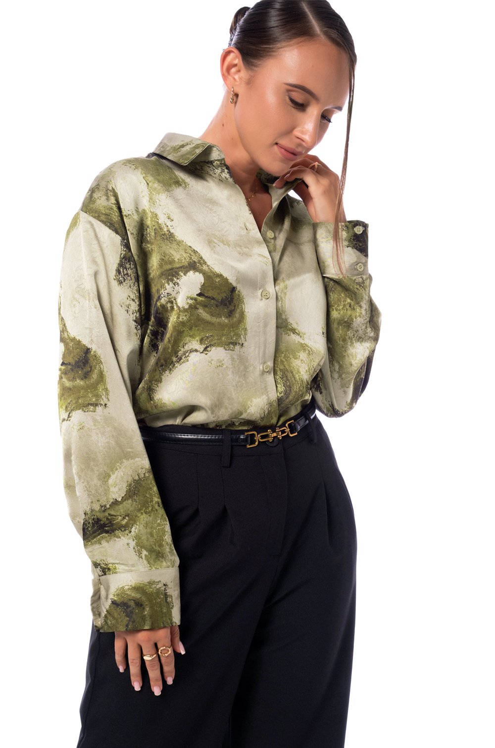 PRINTED OVERSIZED SHIRT - GREEN PRINTED