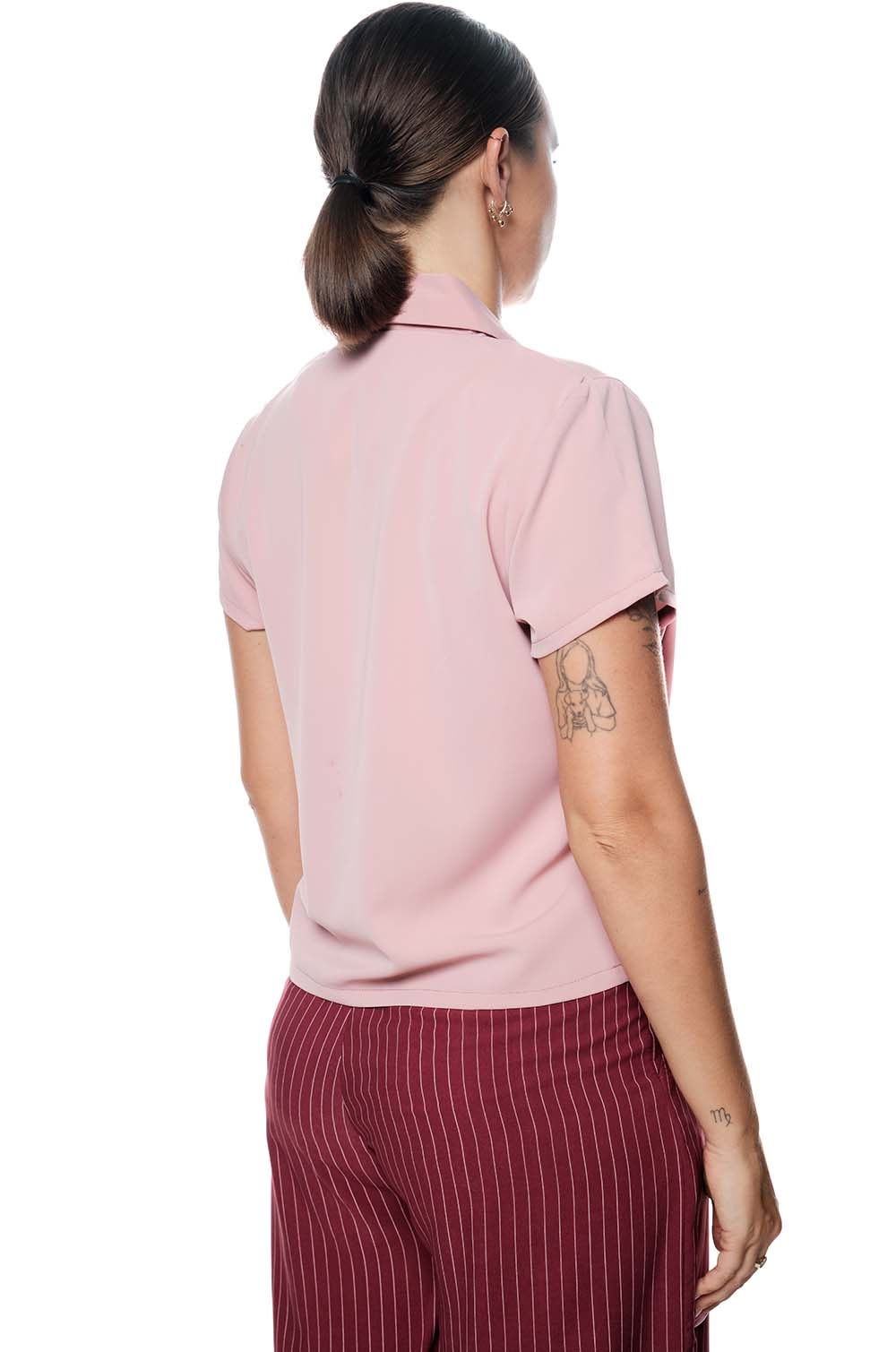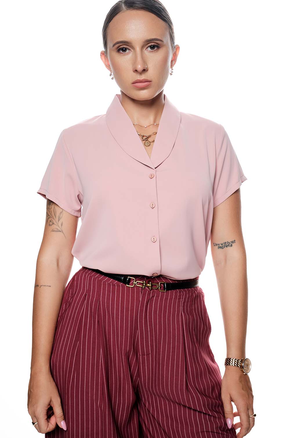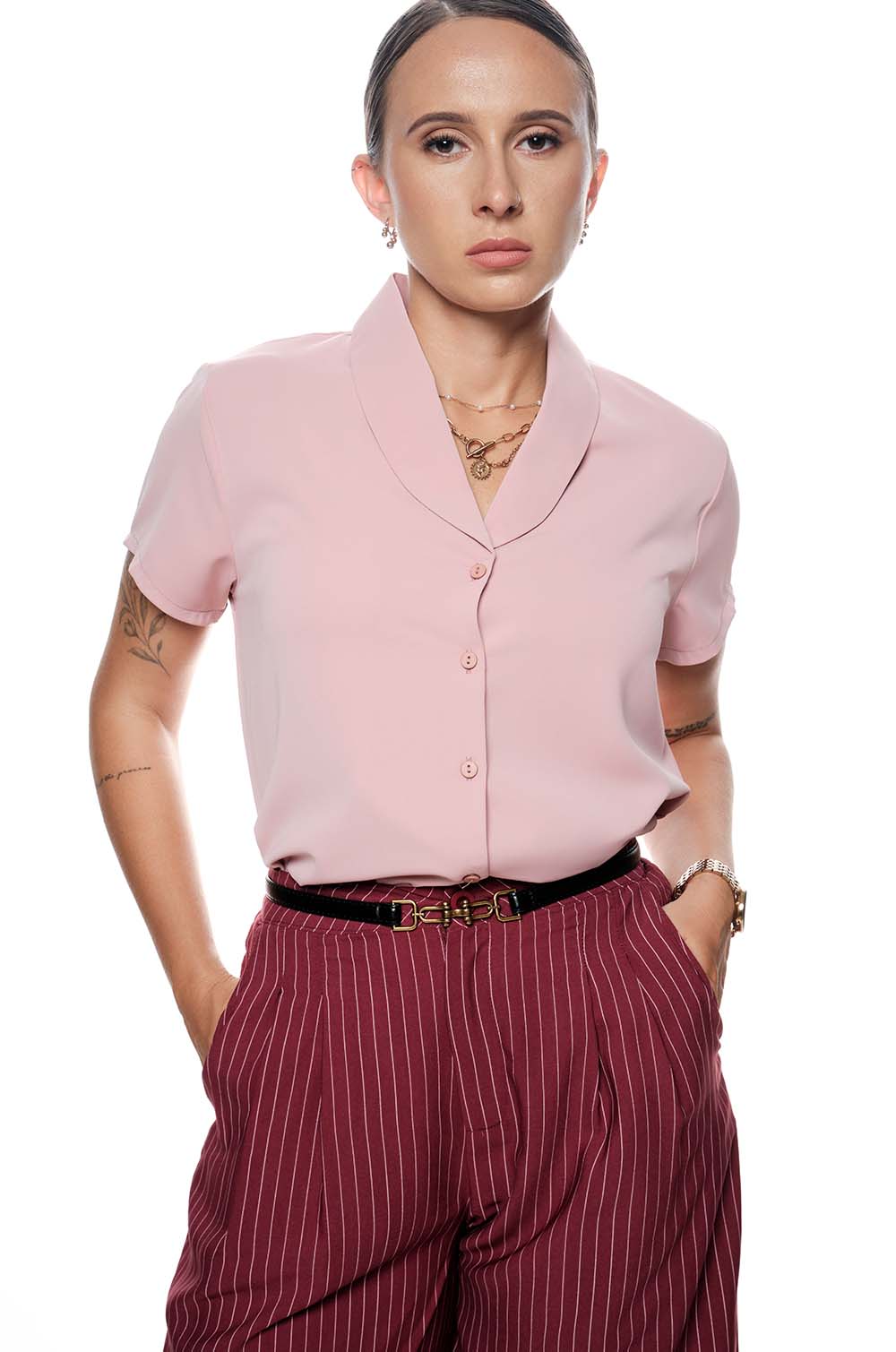 SHORT SLEEVE SHAWL COLLARED TOP - PINK