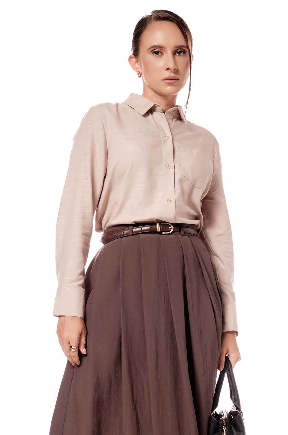 SINGLE POCKET LONG SLEEVE SHIRT - BEIGE