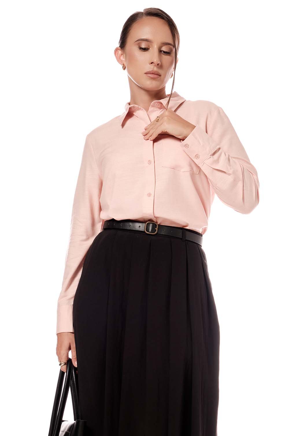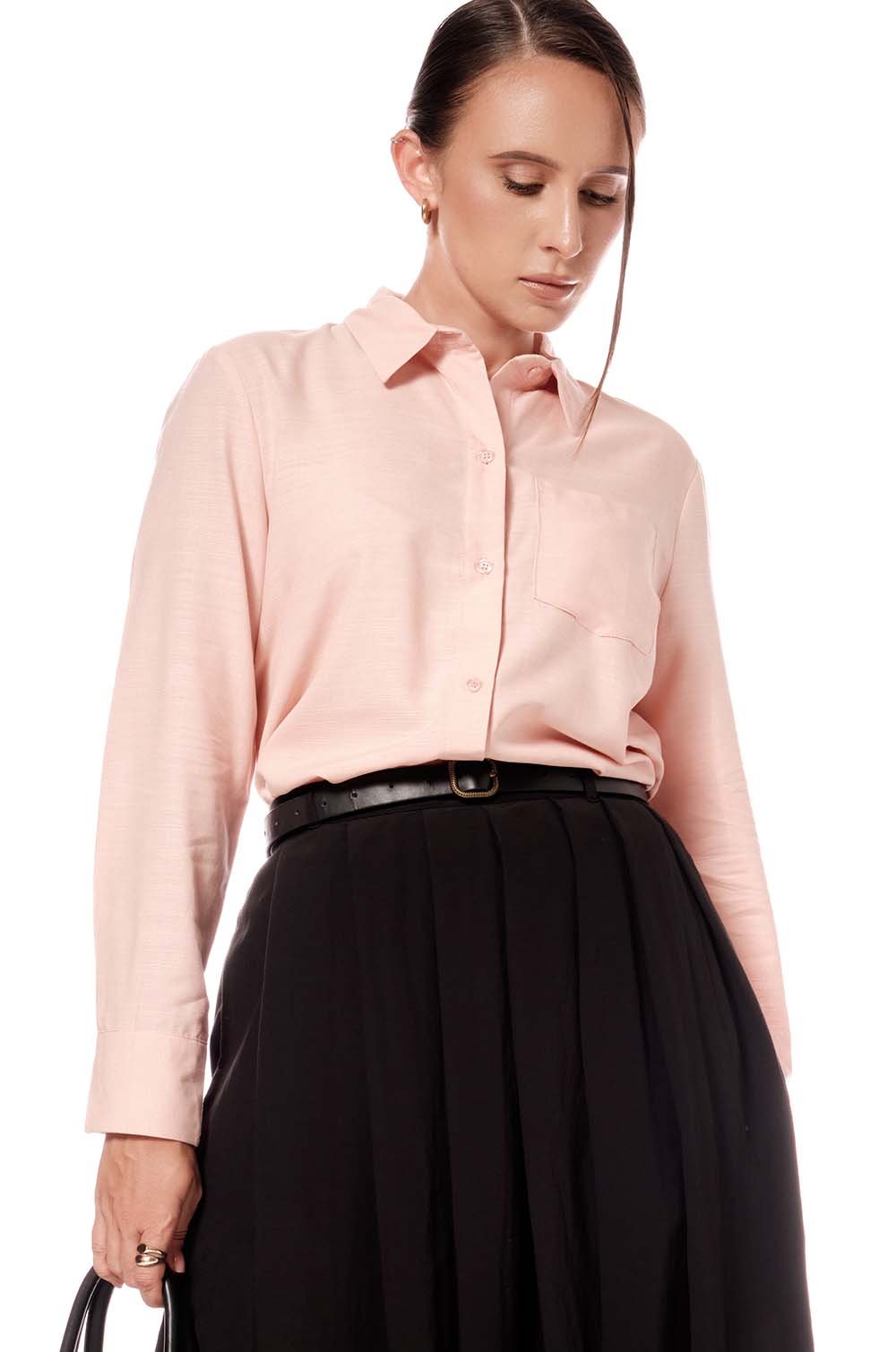 SINGLE POCKET LONG SLEEVE SHIRT - PEACH