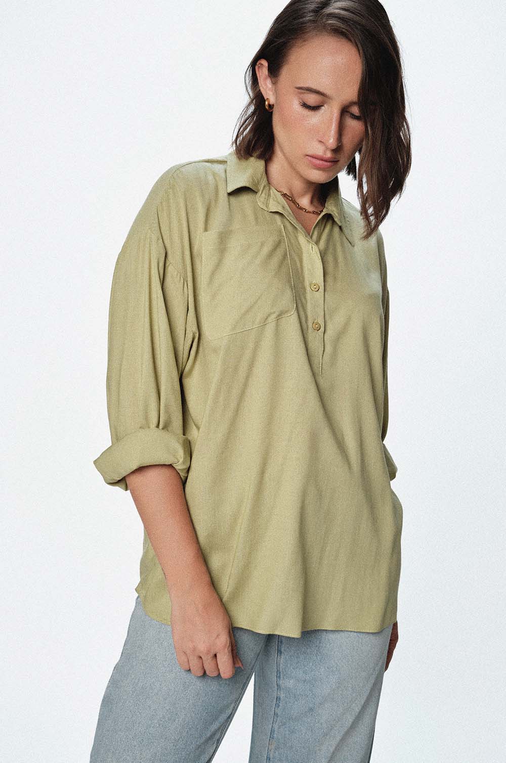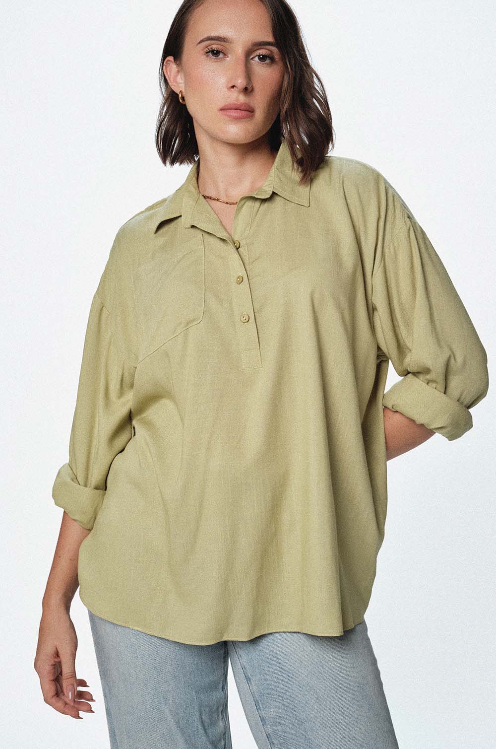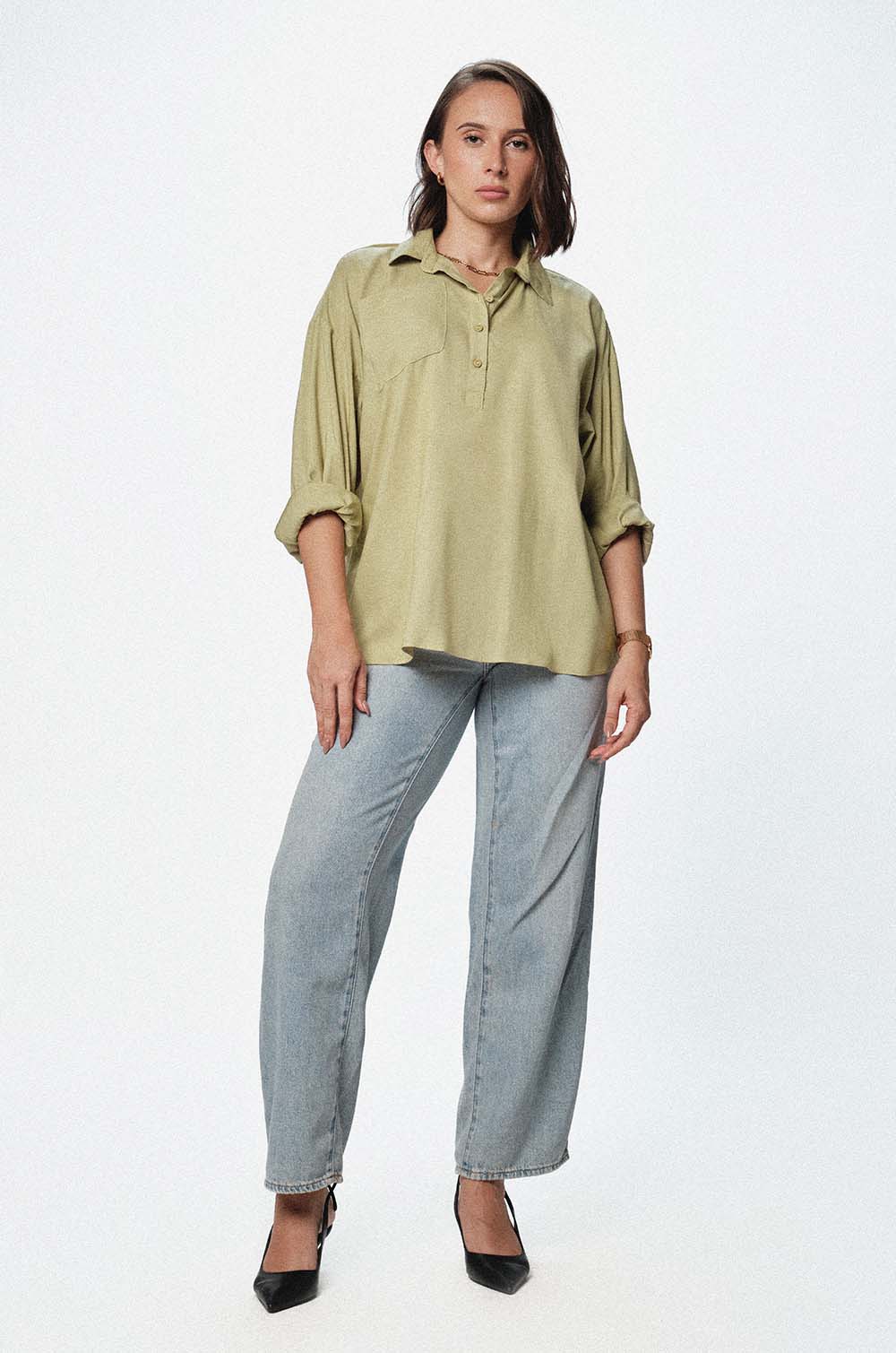 SINGLE POCKET OVERSIZED TOP - GREEN