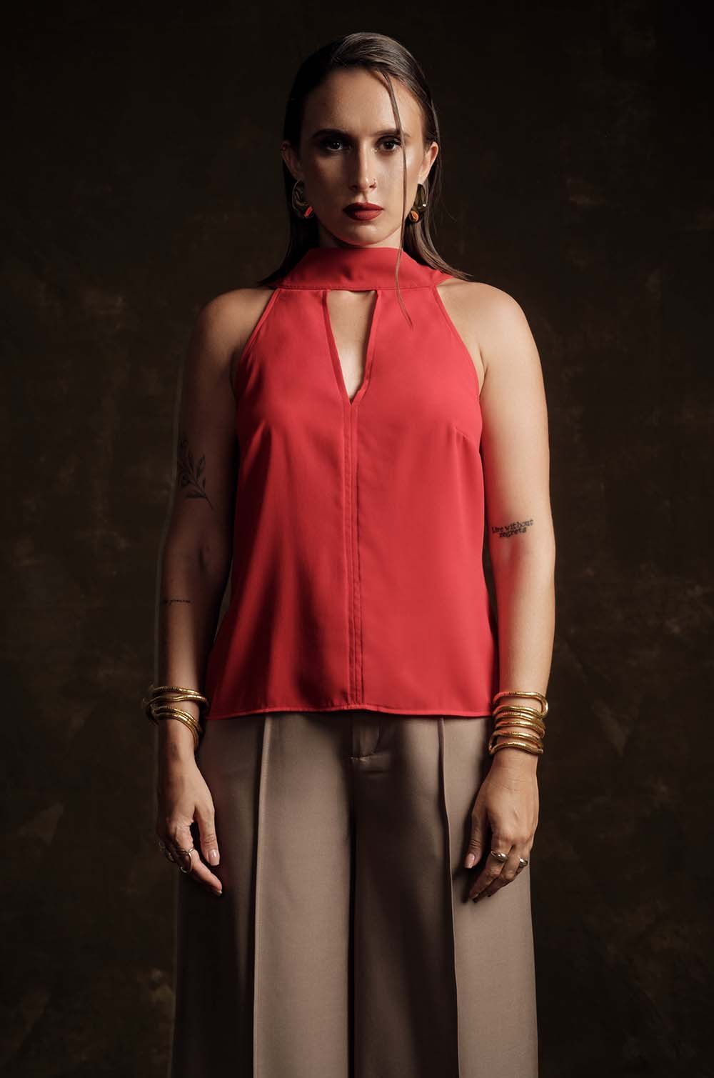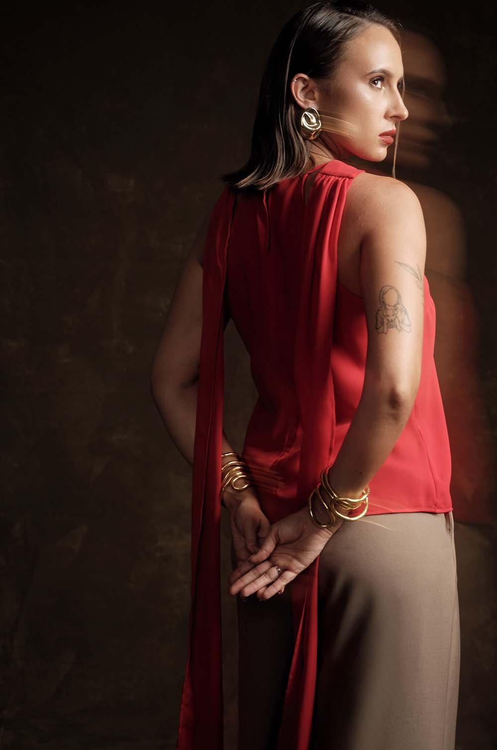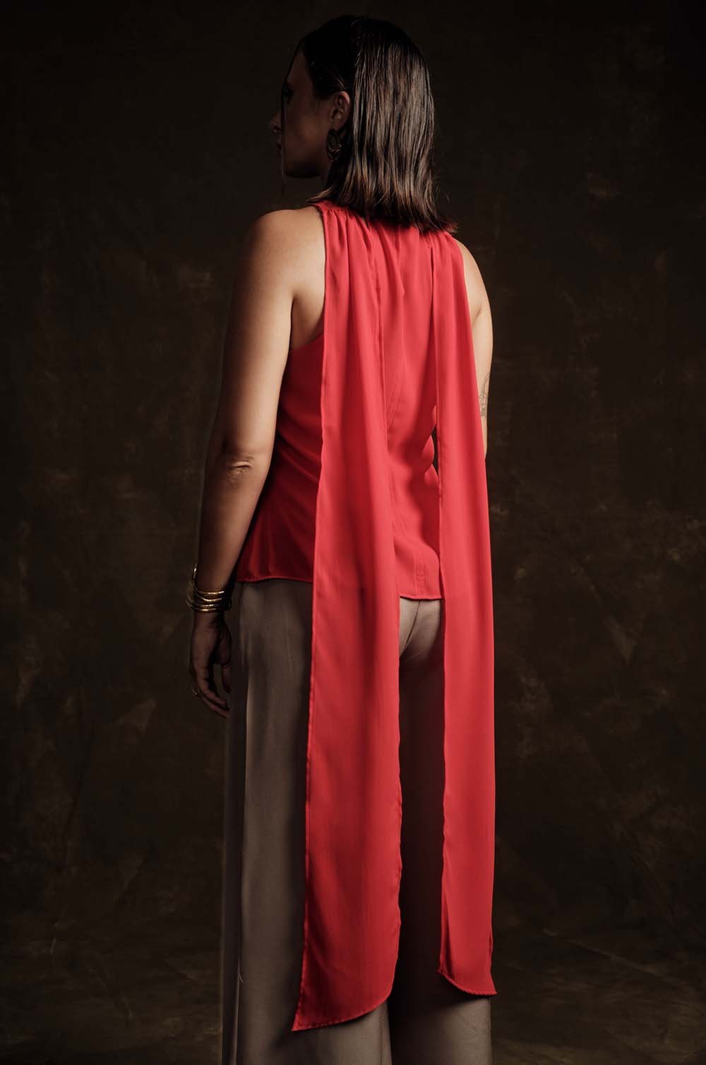 SLEEVELESS TOP WITH ATTACHED SHAWL - RED
