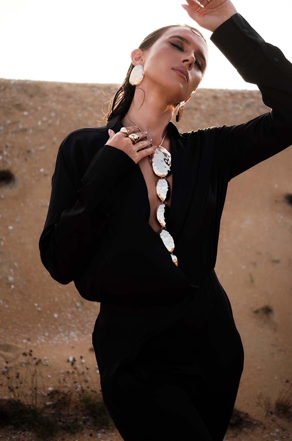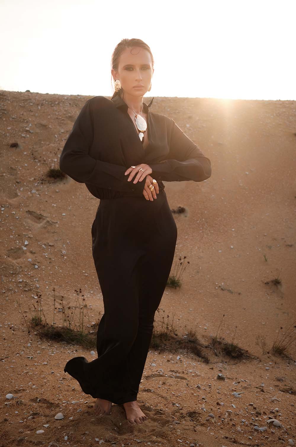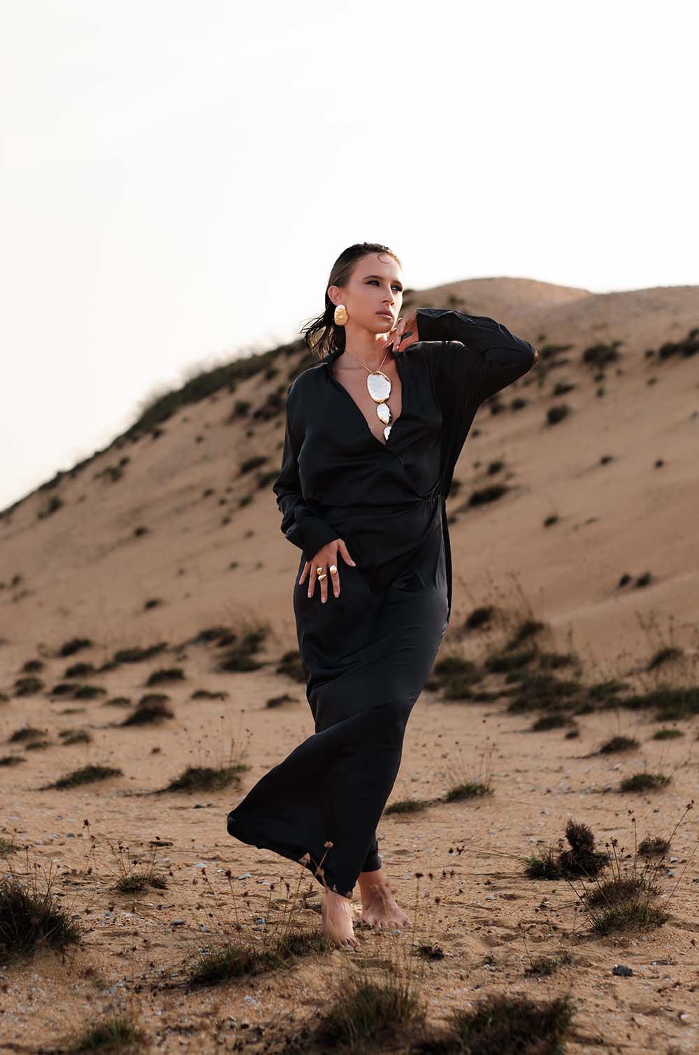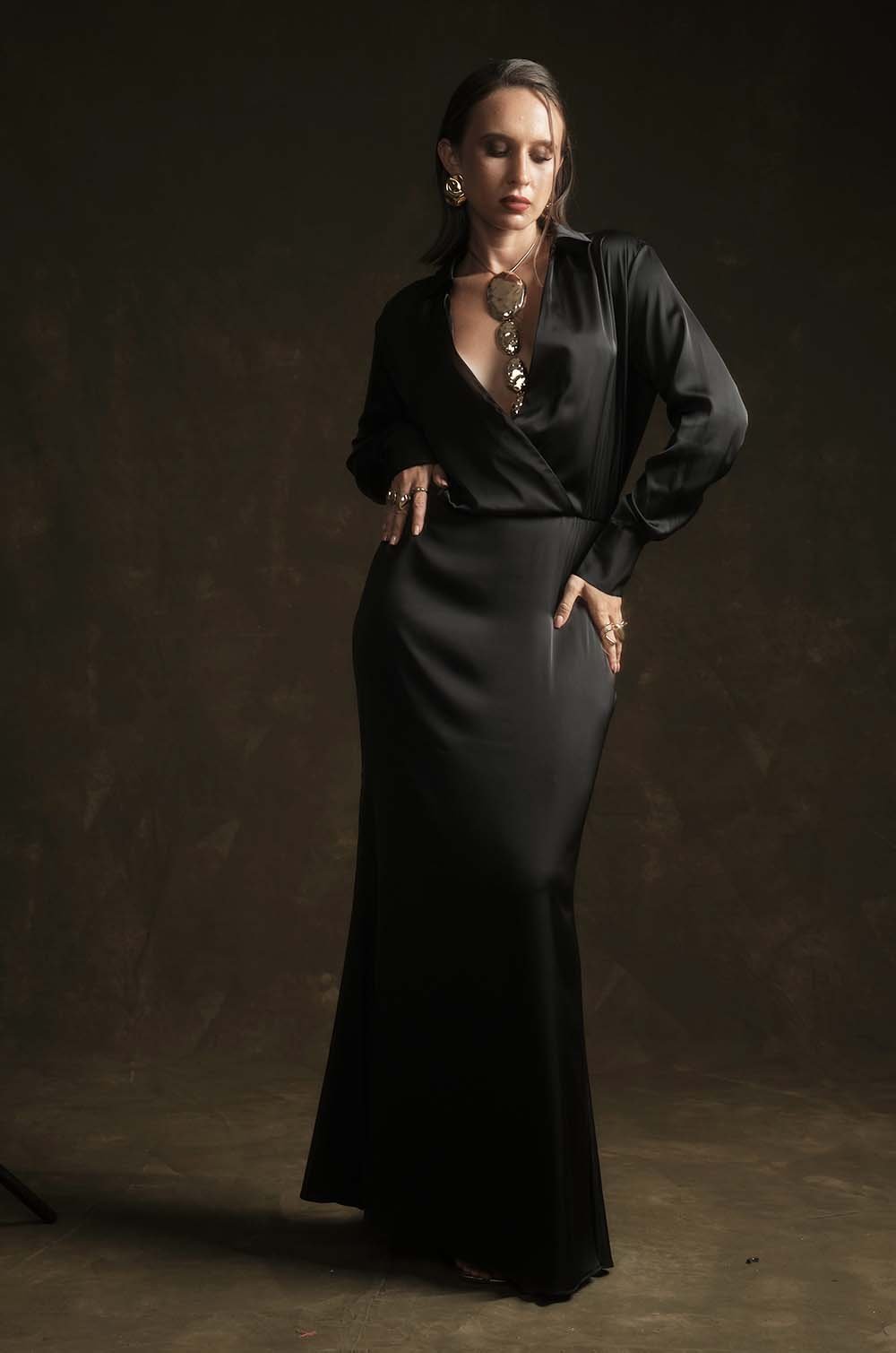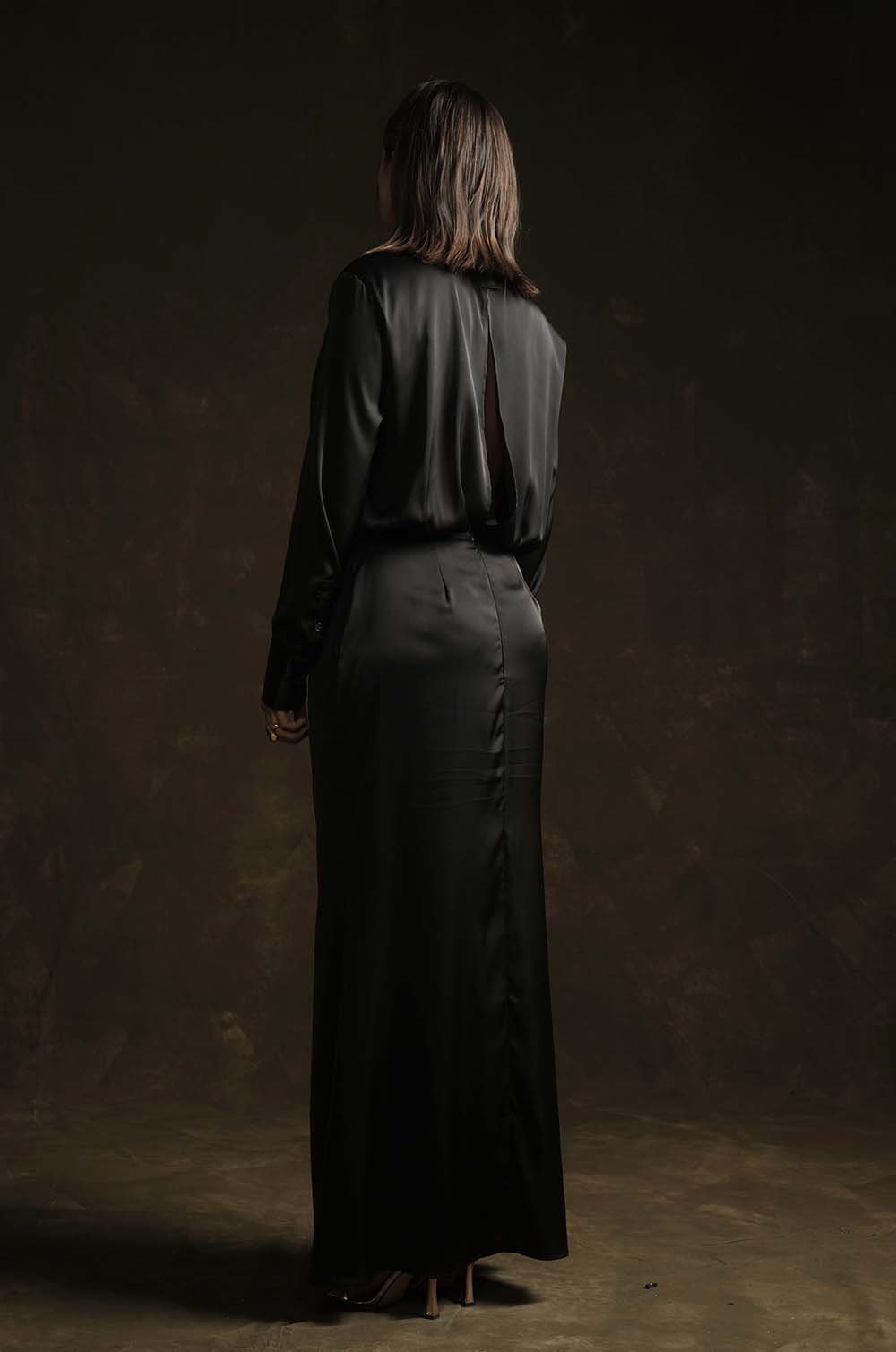 SLIT BACK SATIN SHIRT DRESS - BLACK