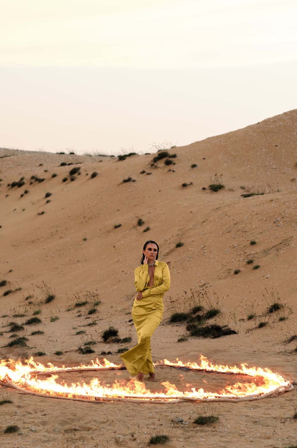 SLIT BACK SATIN SHIRT DRESS - YELLOW