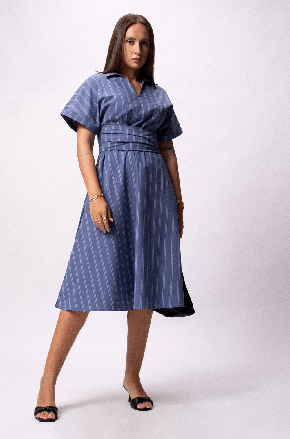 STRIPED WRAP DRESS