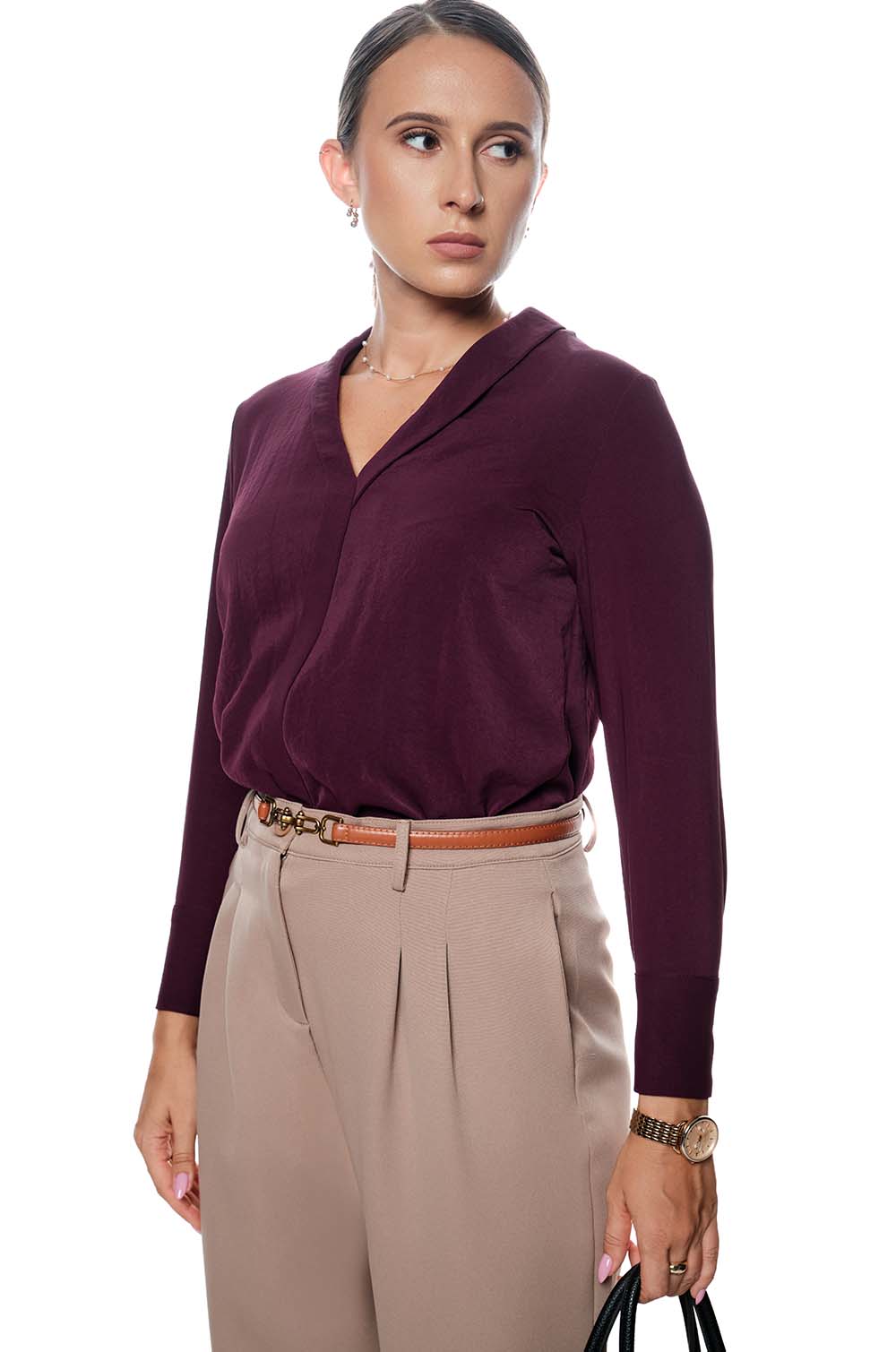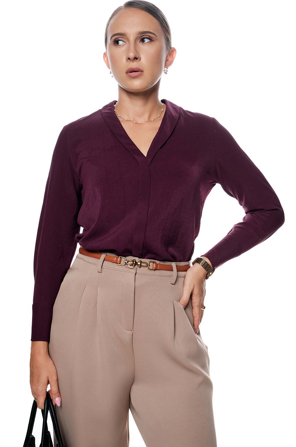 V-NECK LONG SLEEVE TOP - BURGANDY