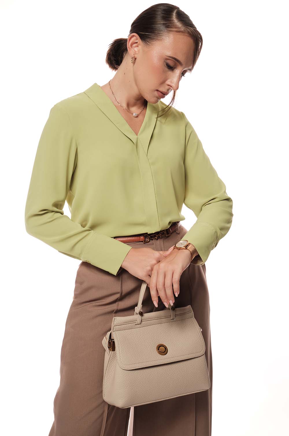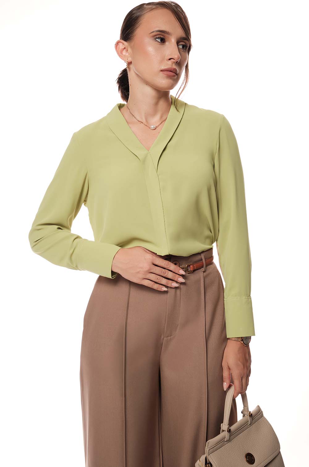 V Neck Long Sleeve Top - green